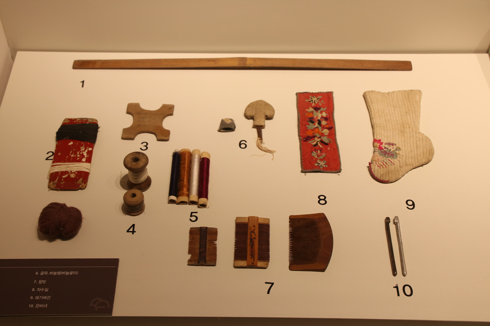 전시관을 둘러 보면 제일 먼저 집 이야기 중 안방에 보입니다. 안방은 여인의 고단한 삶이 벤 장소인데요 지장 반짇고리, 인두판, 자수실, 다듬이와 다리미 등 황희근 여사의 손때가 묻은 규방용품에는 이하복 고택의 역사와 가족의 희로애락이 오롯이 배어 있습니다.