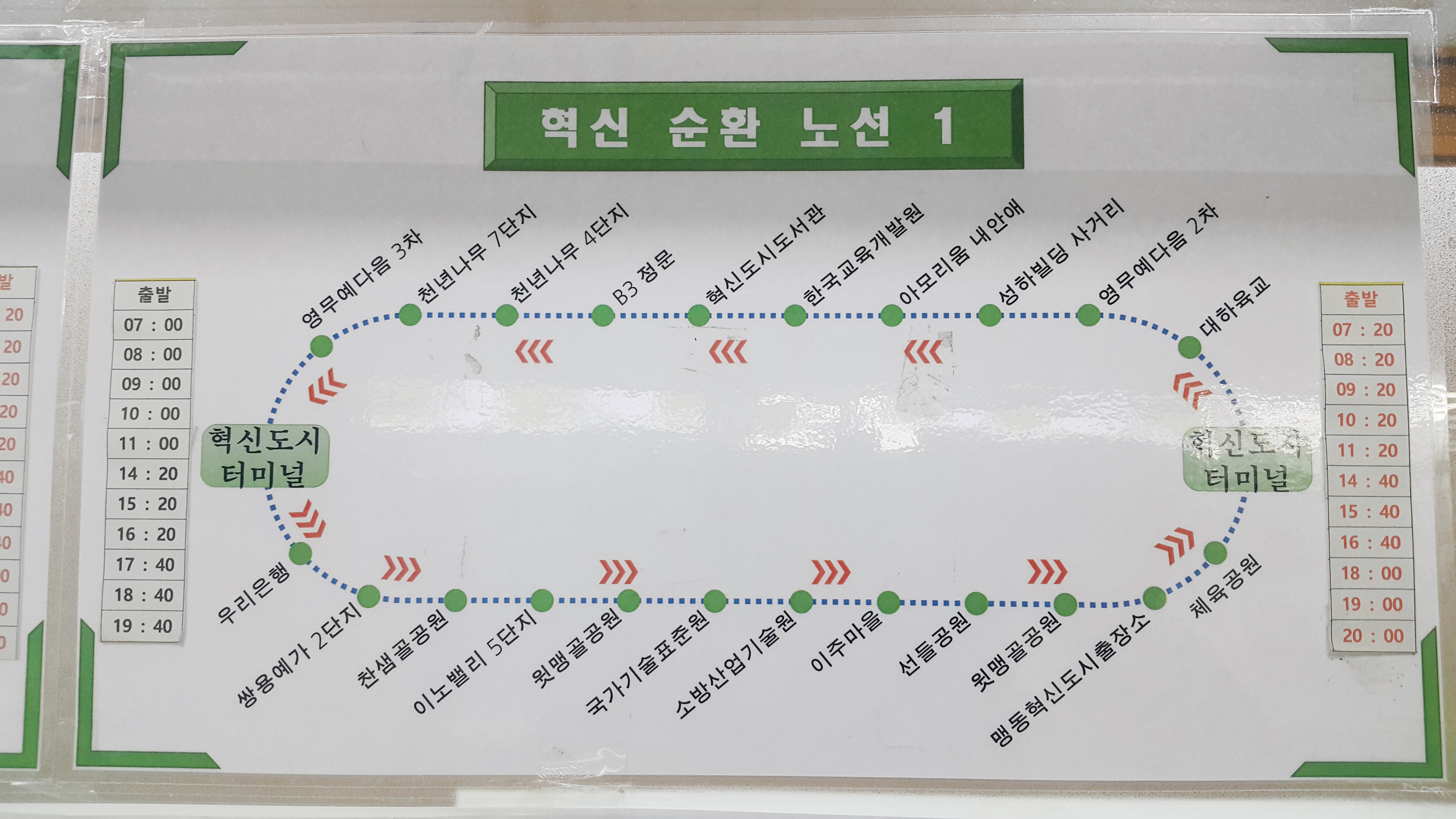 혁신도시 순환버스 시간표 1번 노선, 2번 노선.