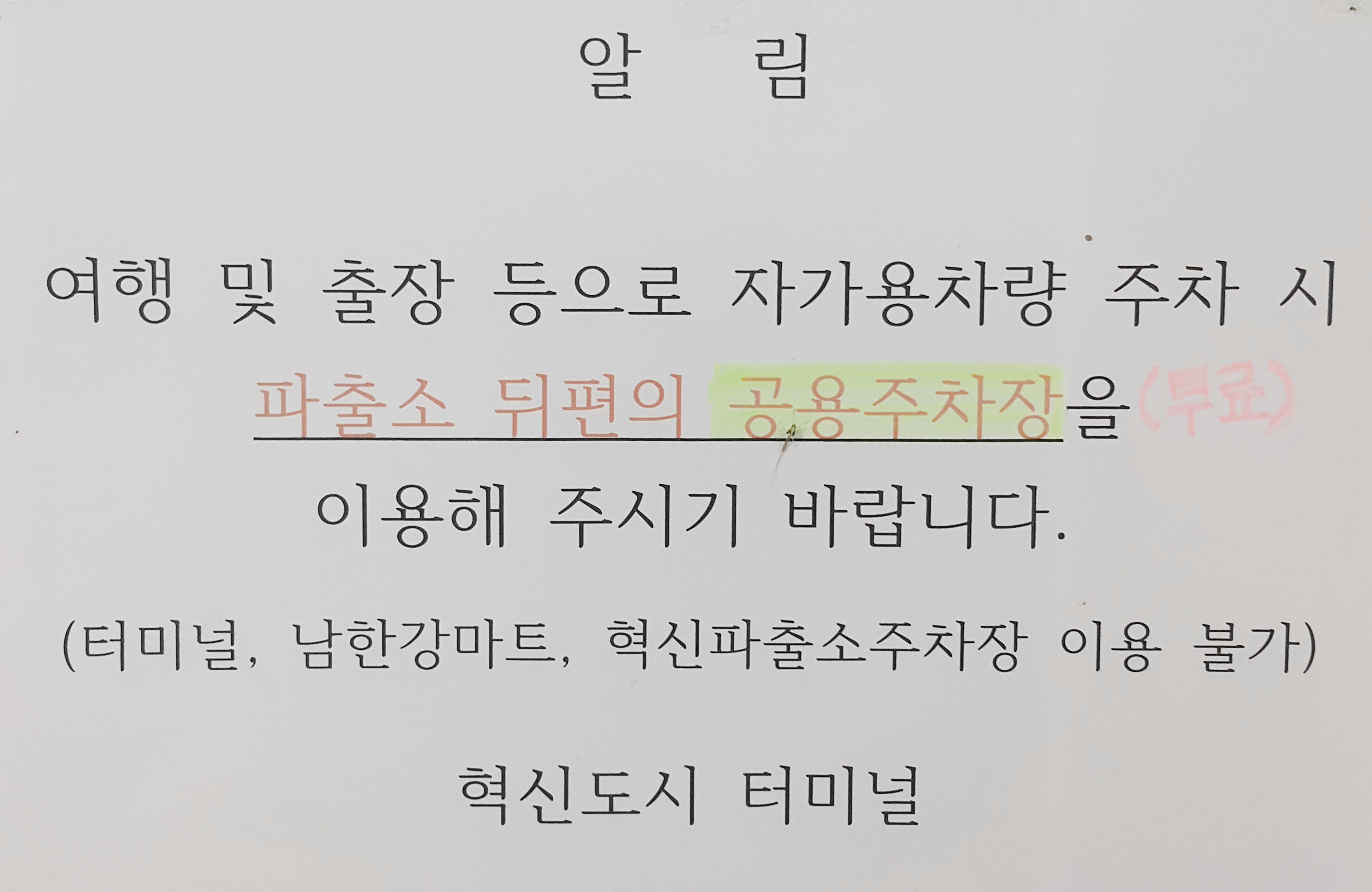 혁신도시 터미널 무료주차장 안내