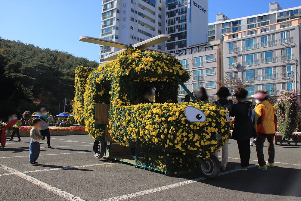 아이들의 인기 캐릭터 라바와 타요 등등 국화조형물이 있어서 아이들이