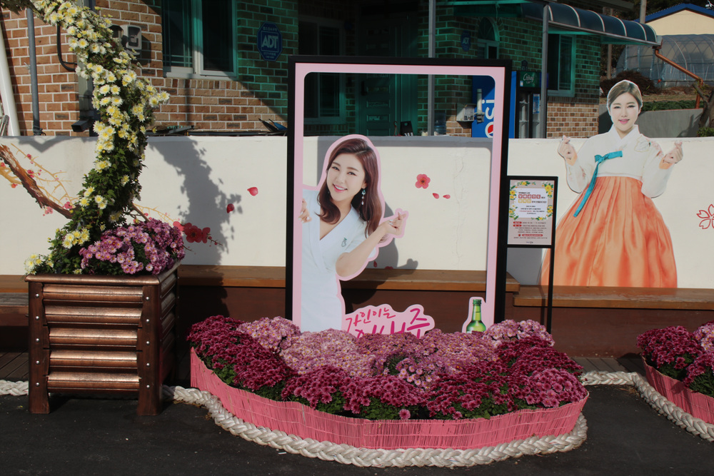 마을 입구에 송가인 사진과 함게 사진을 찍을 수 있는 공간을 마련해 두어