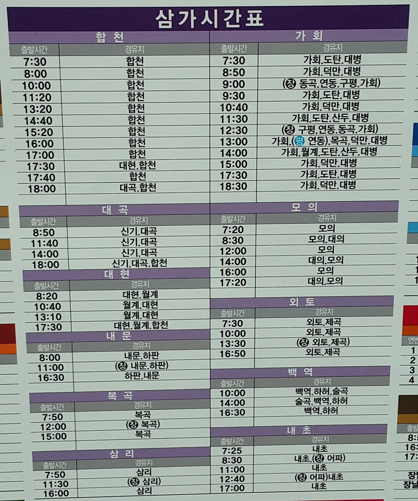 용주, 합천, 평학, 유전, 봉산, 거창, 가회,