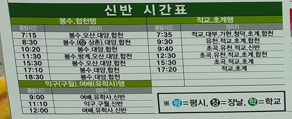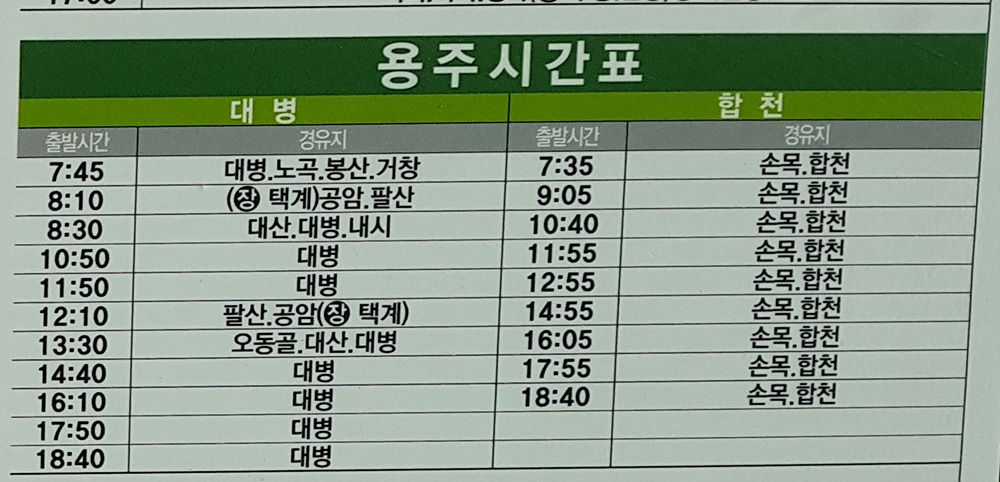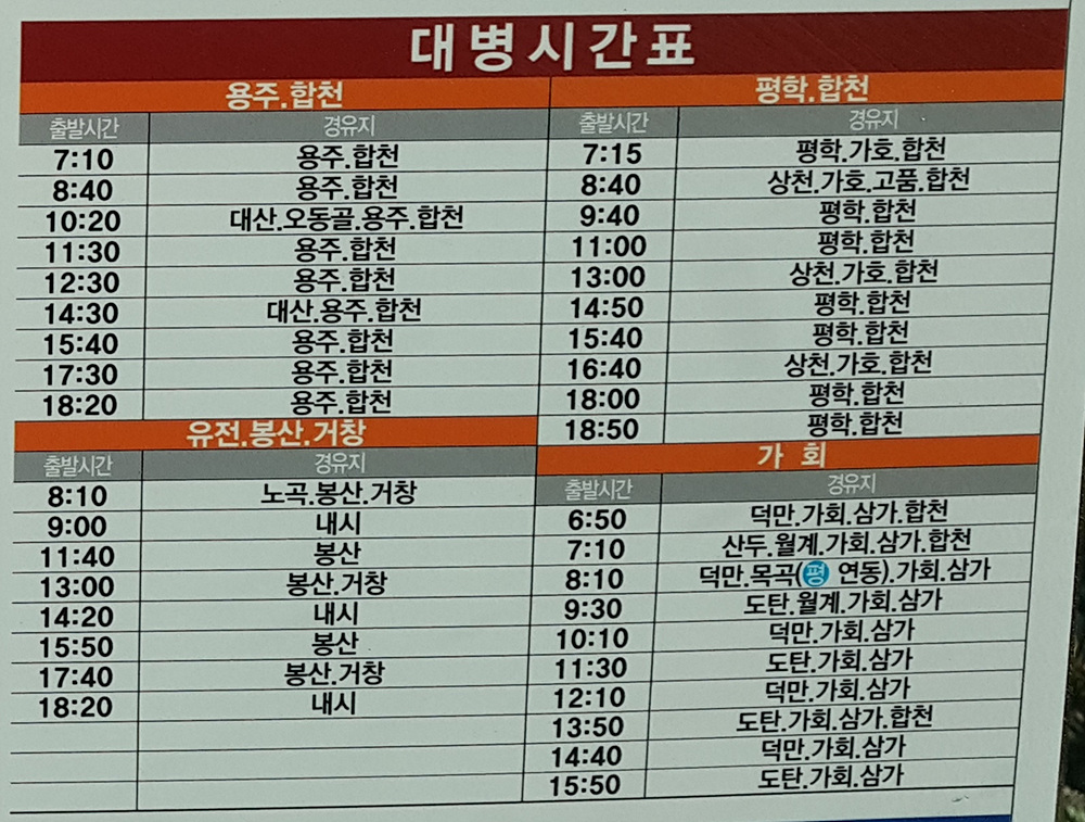 용주, 합천, 평학, 유전, 봉산, 거창, 가회,