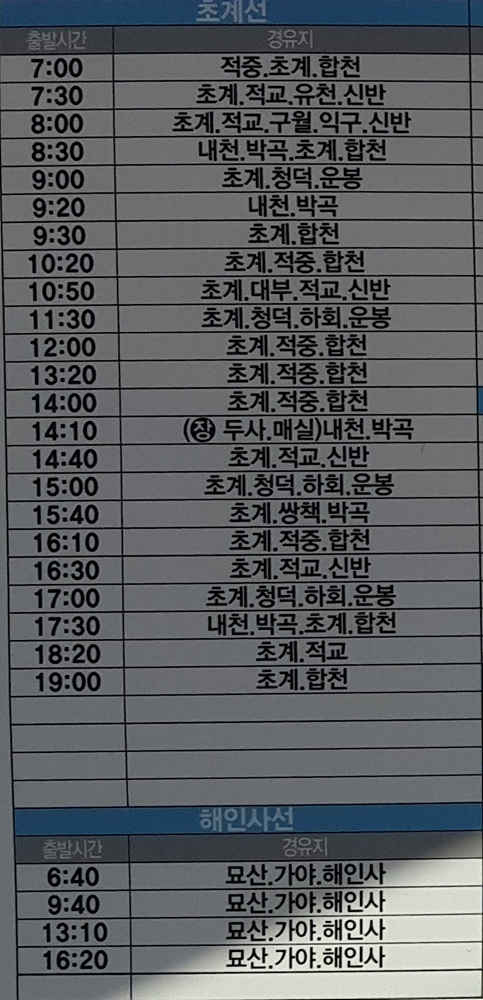 봉산, 거창, 합천, 팔심, 야로, 가야, 해인사,