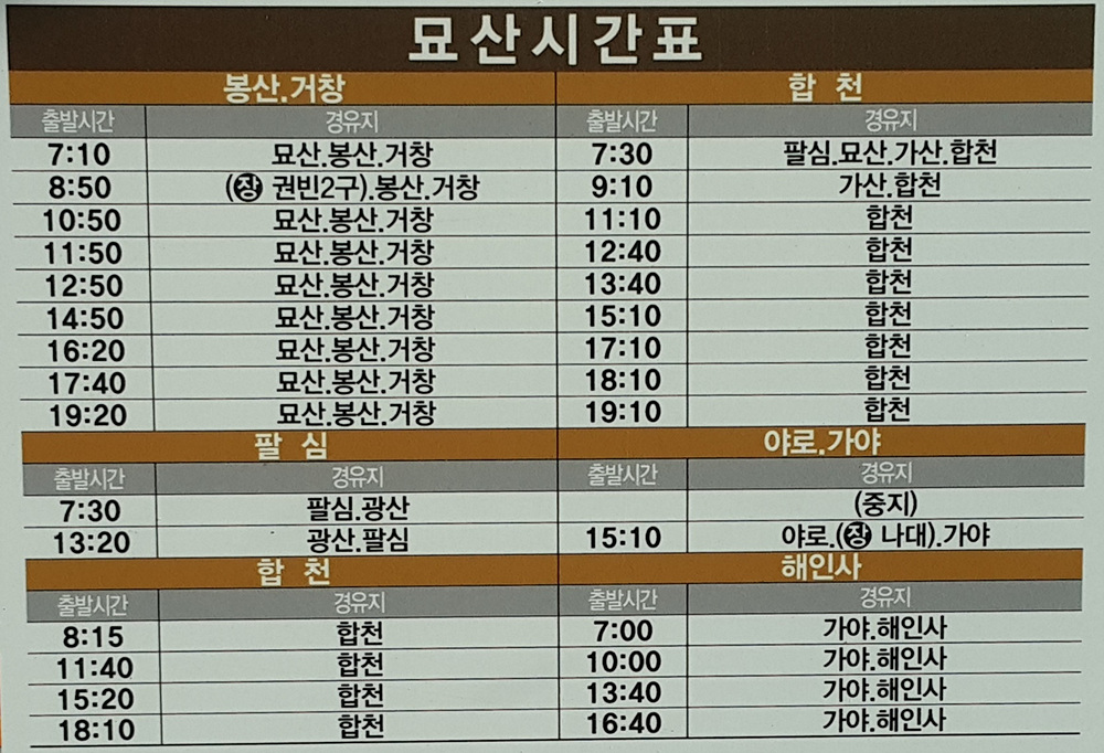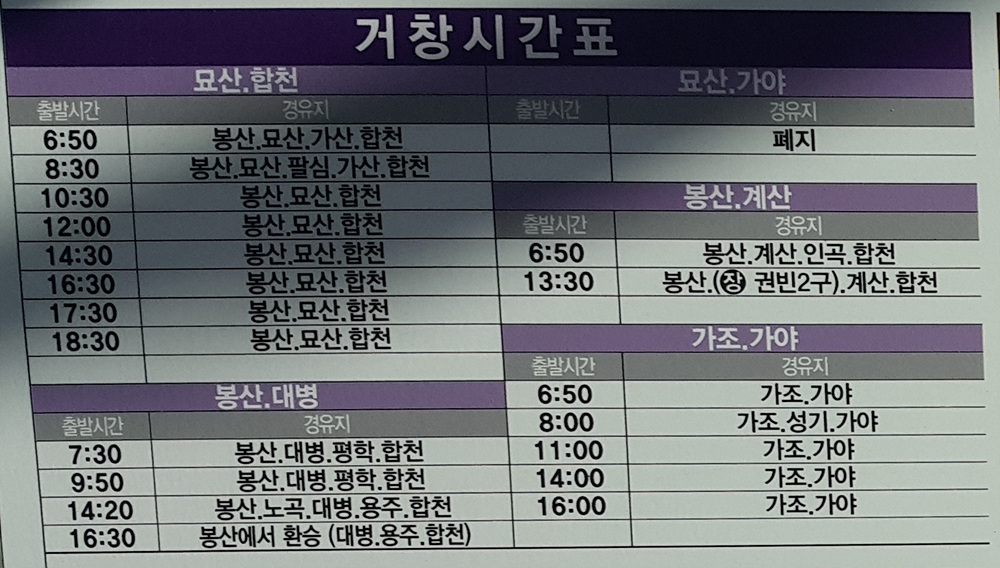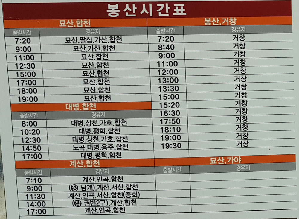 묘산, 합천, 봉산, 대병, 가야, 가조,