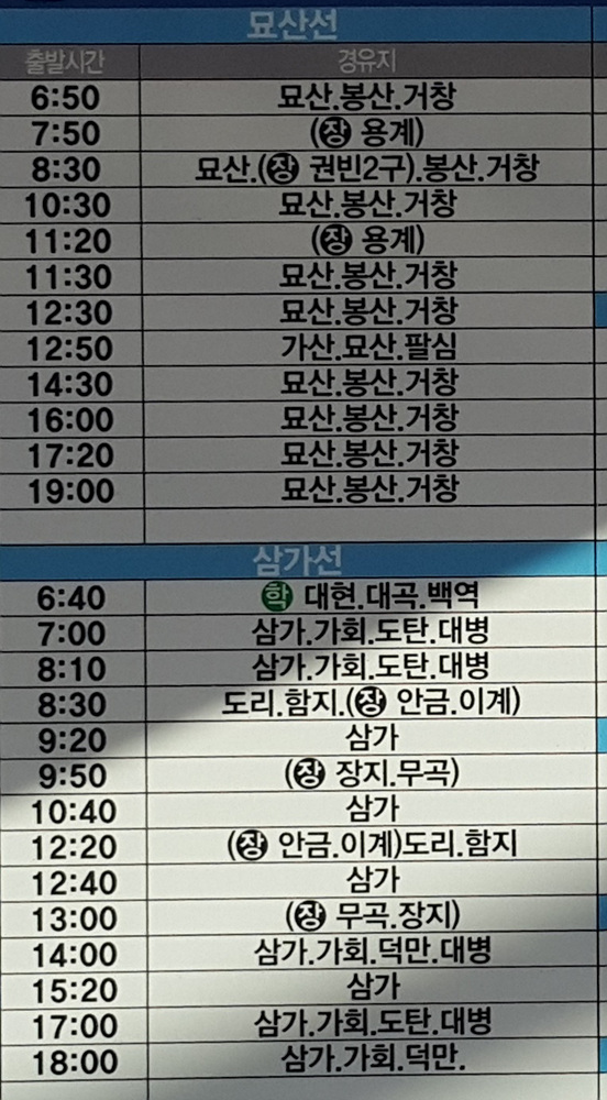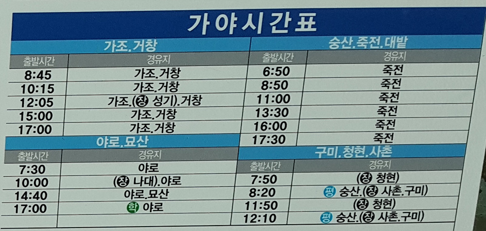 가조, 거창, 야로, 묘산, 승산, 죽전, 대밭, 구미, 청현, 사촌,
