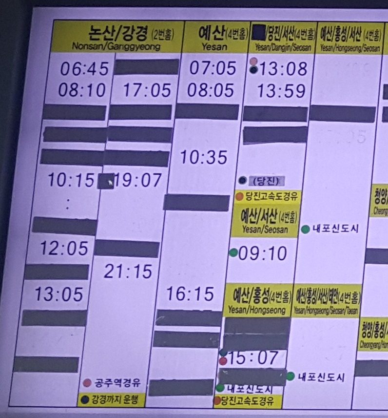 논산, 강경, 예산, 당진, 서산, 홍성, 태안,