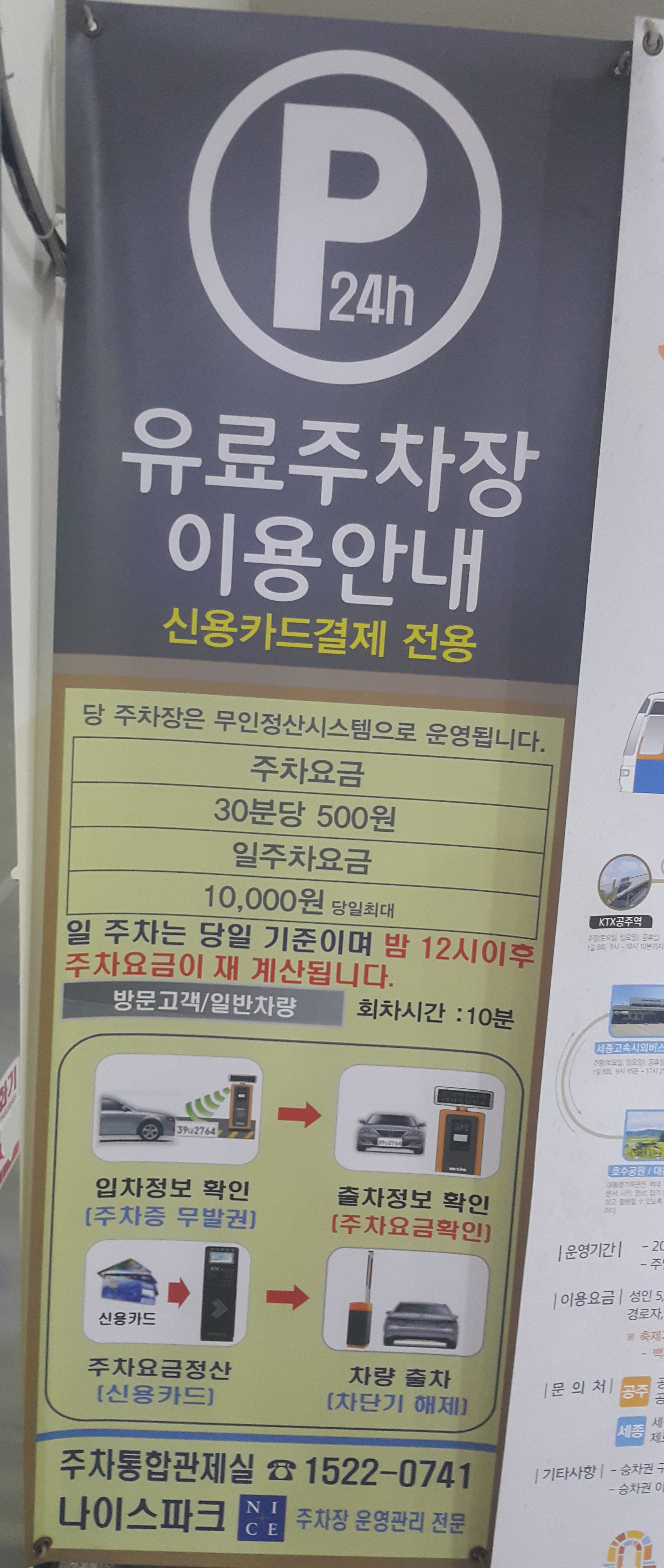 공주시외버스터미널은 주차장이 유료로 운영되고 있습니다.