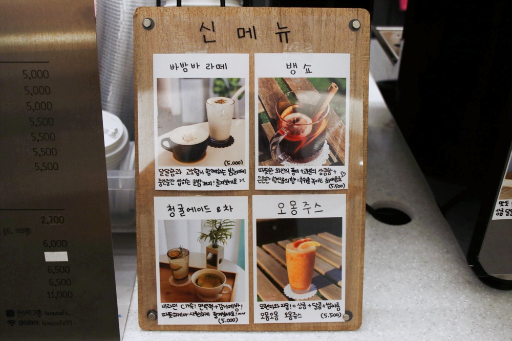 카페 루나의 이름을 카페의 소품에도 제대로 적용하고 있네요