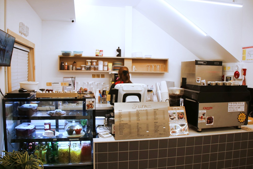2층 건물에 하얀색 페인트로 마감된 루나 카페는 좌측에 입구가 있으며