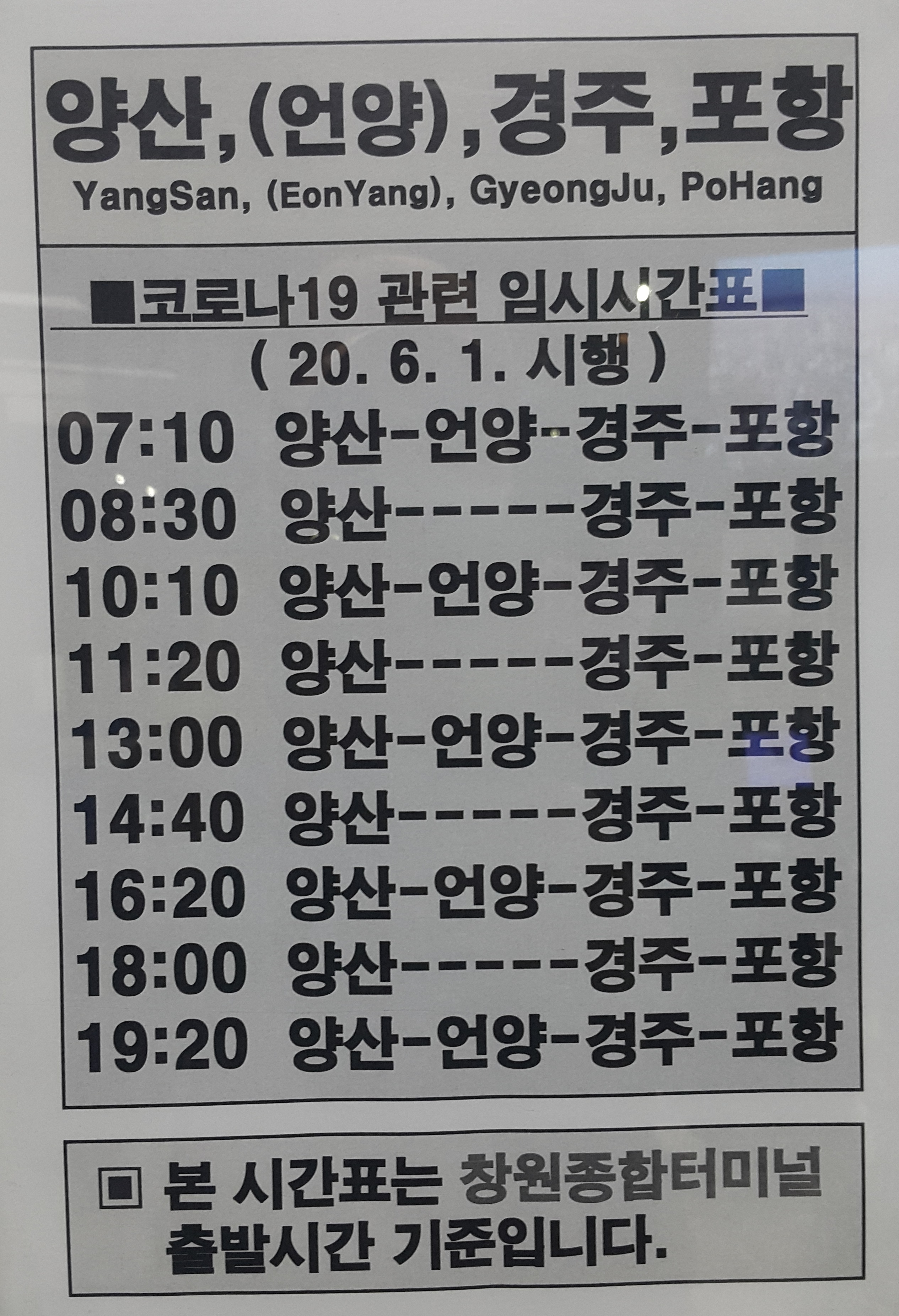 창원 출발 양산, 언양, 경주, 포항 방면.