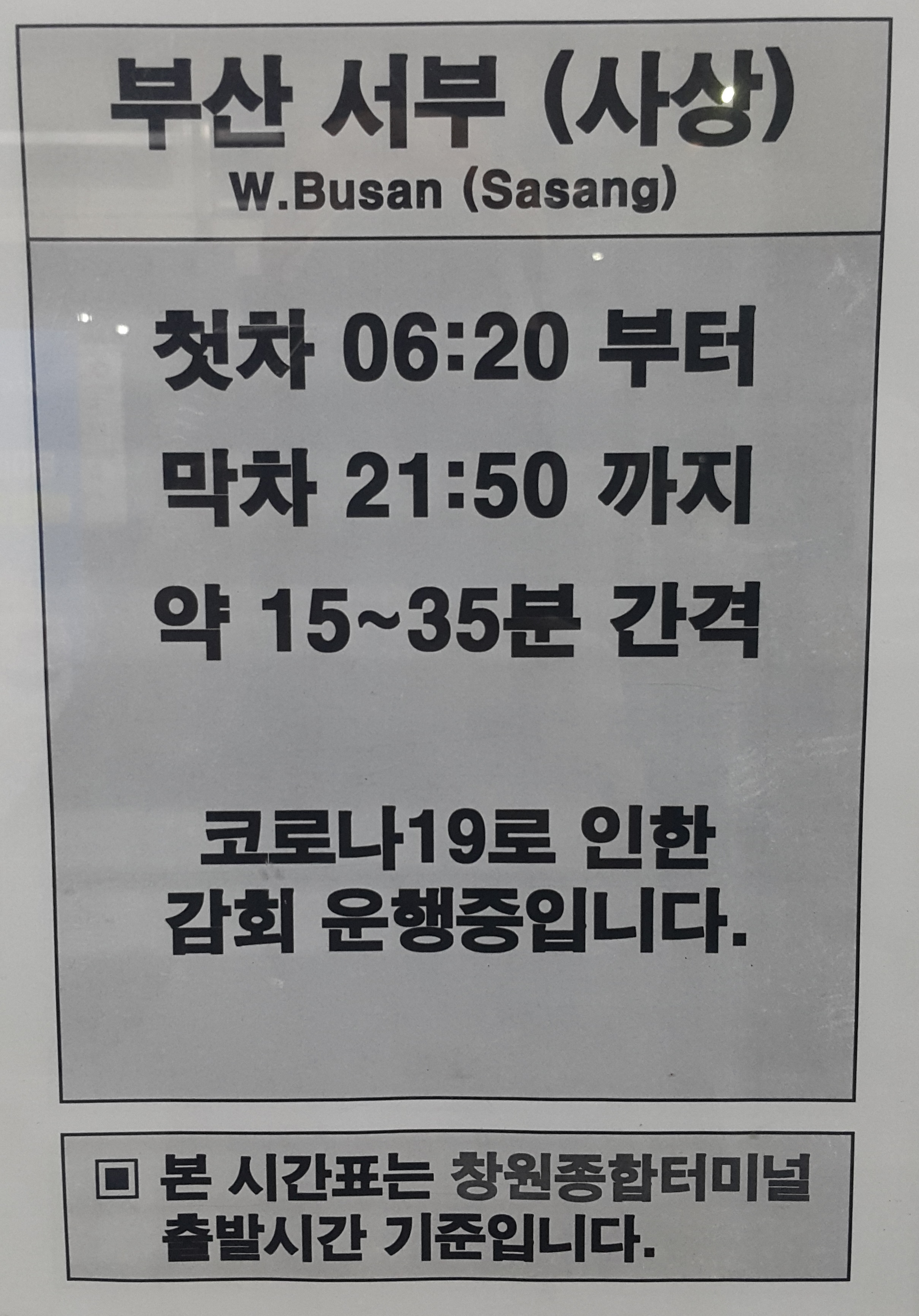 창원 출발 부산 서부터미널 사상터니멀 방면.