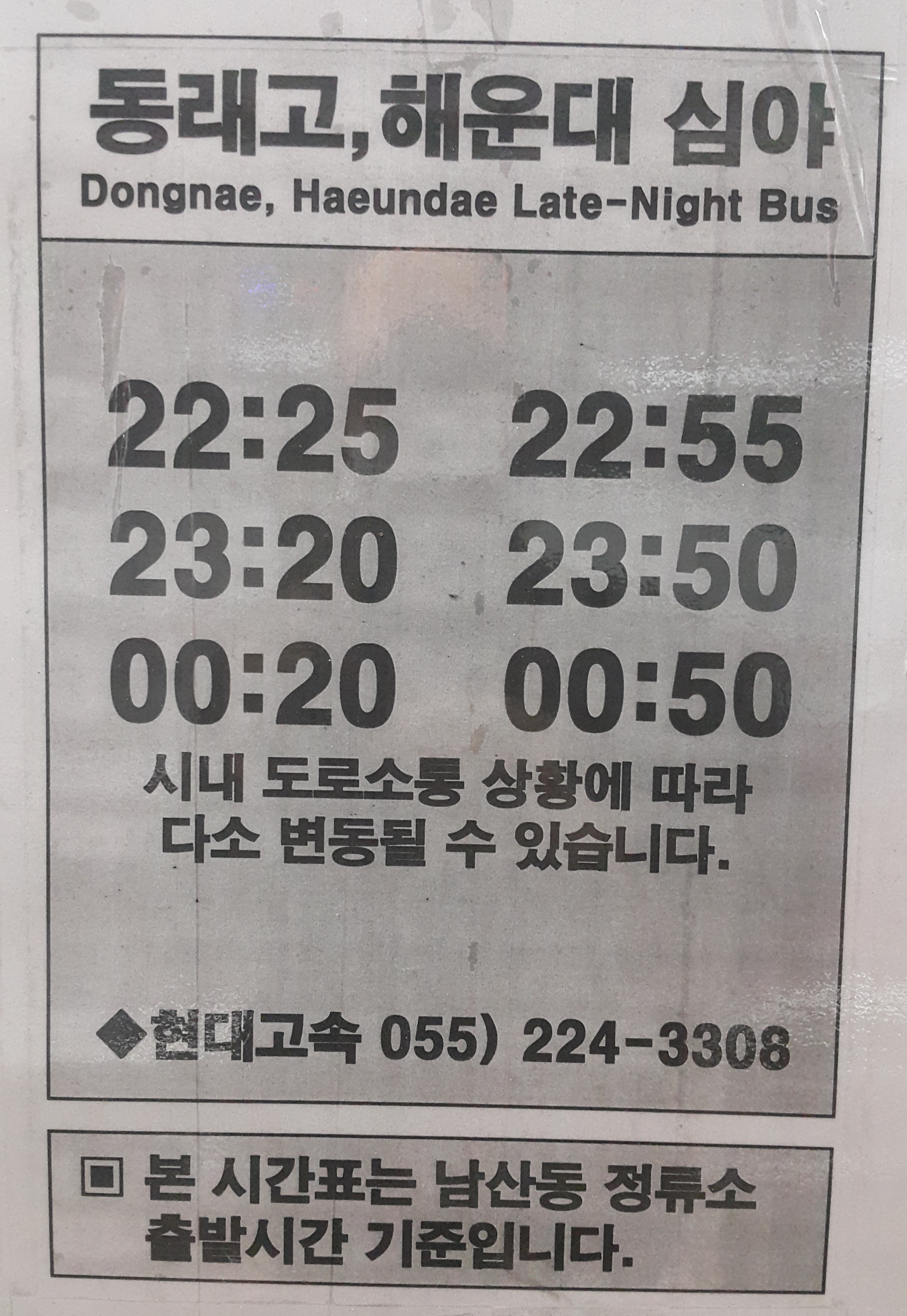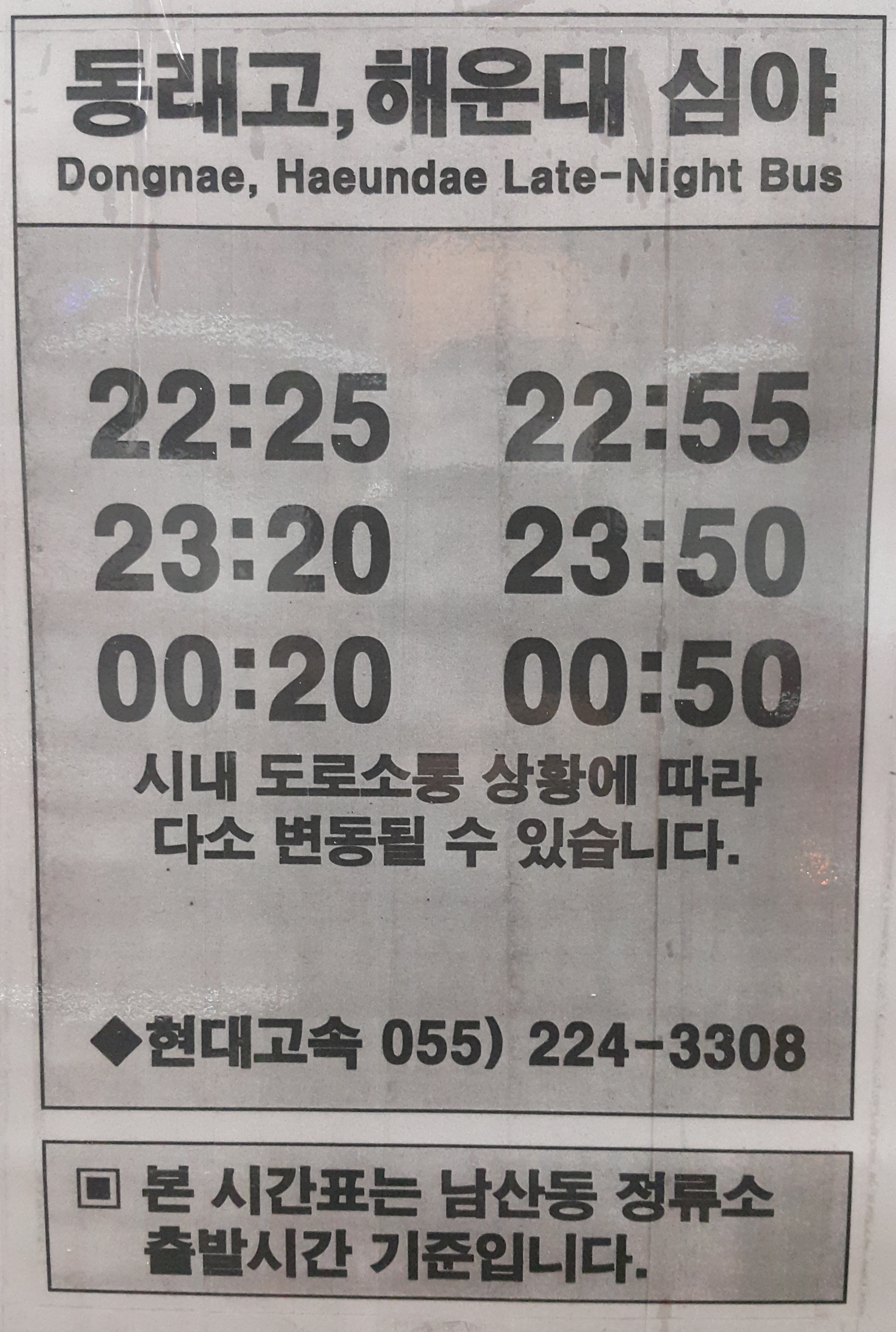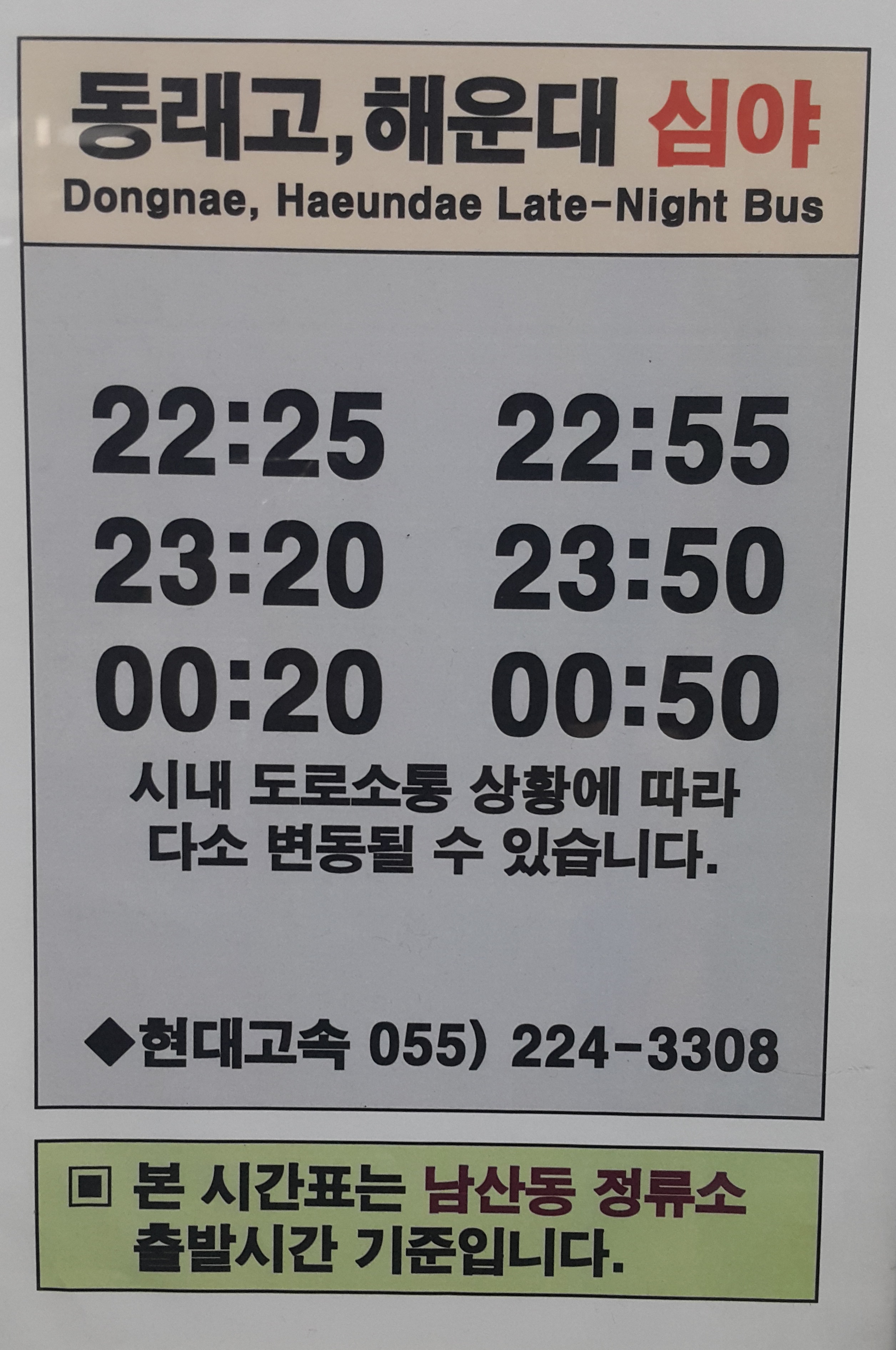 창원 남산정류장 심야버스 운행시간표