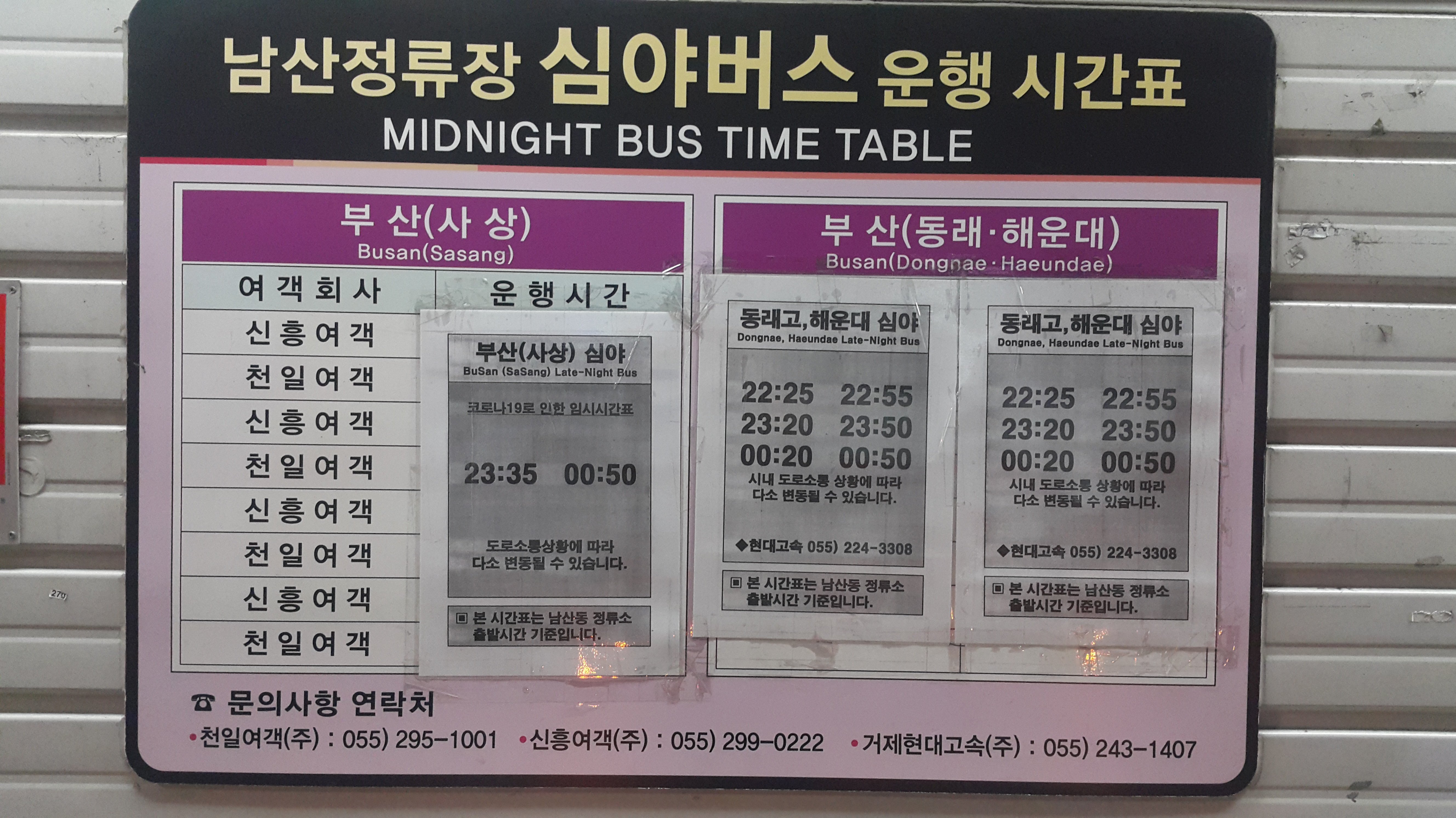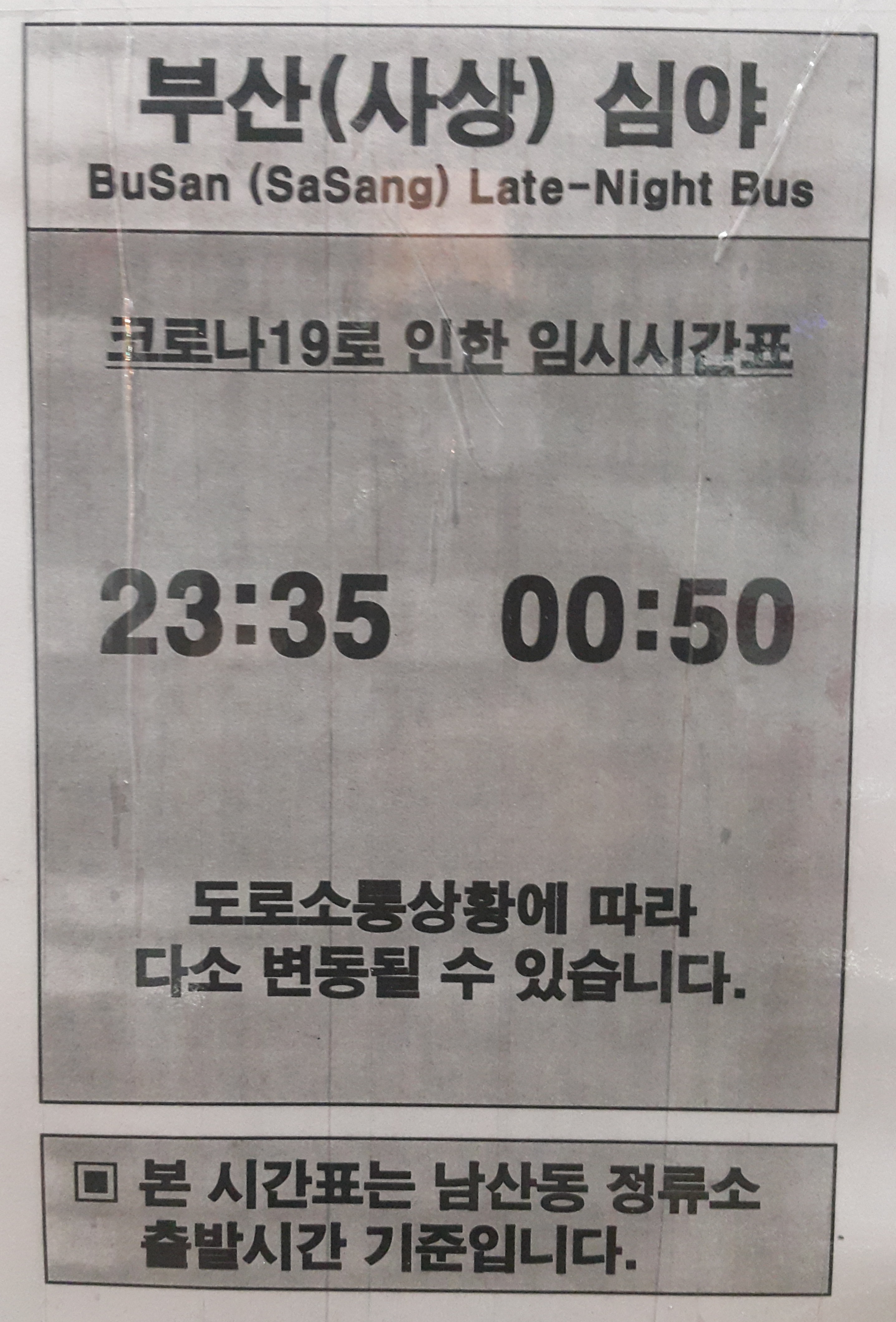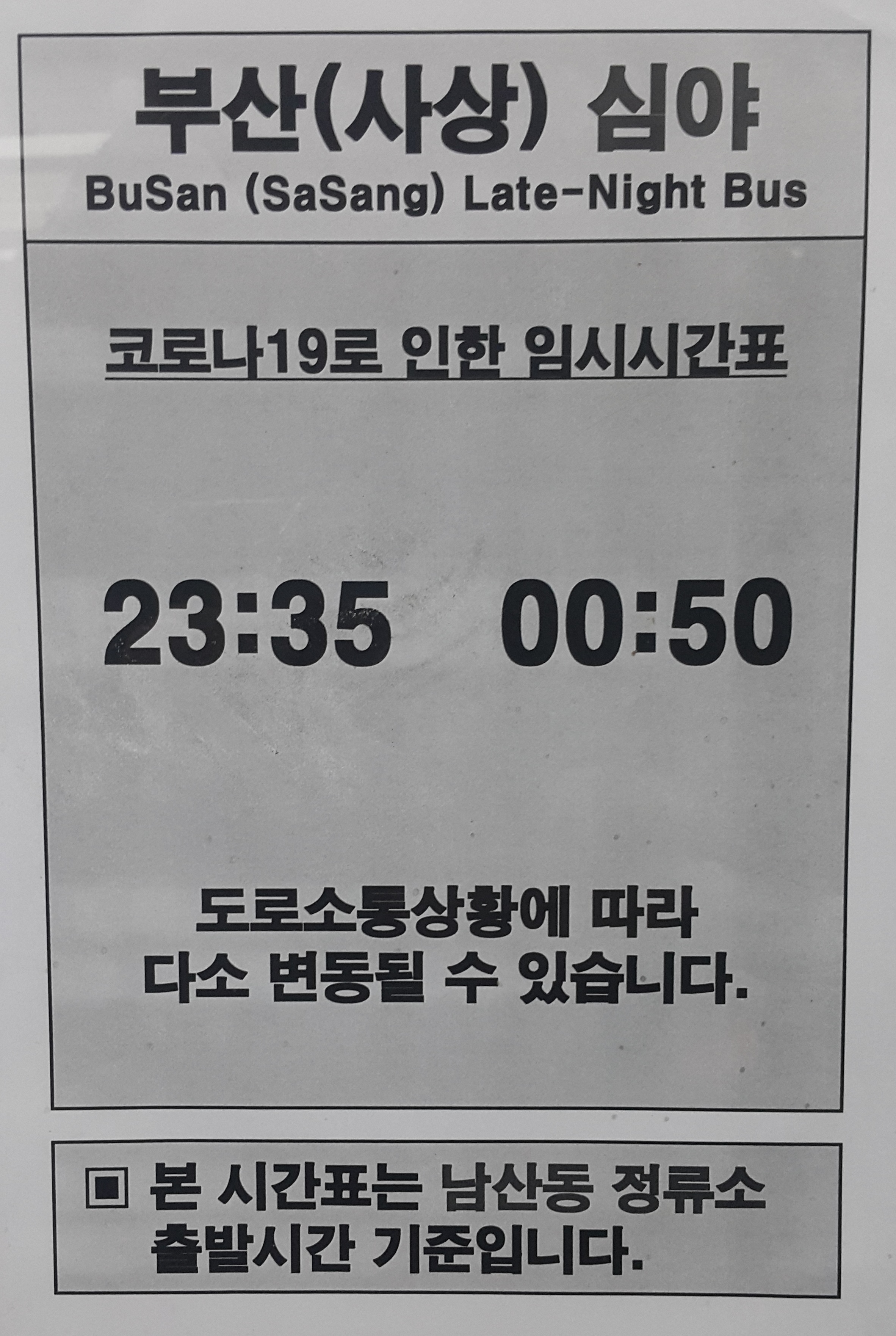 창원 남산정류장 심야버스 운행시간표