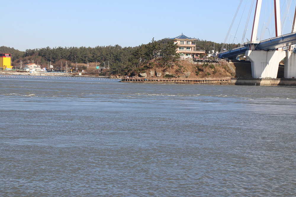 진도대교 아래에는 진도군과 해남군을 사이에 두고 강한 물살이 흐르는 것을 볼 수 있는데요