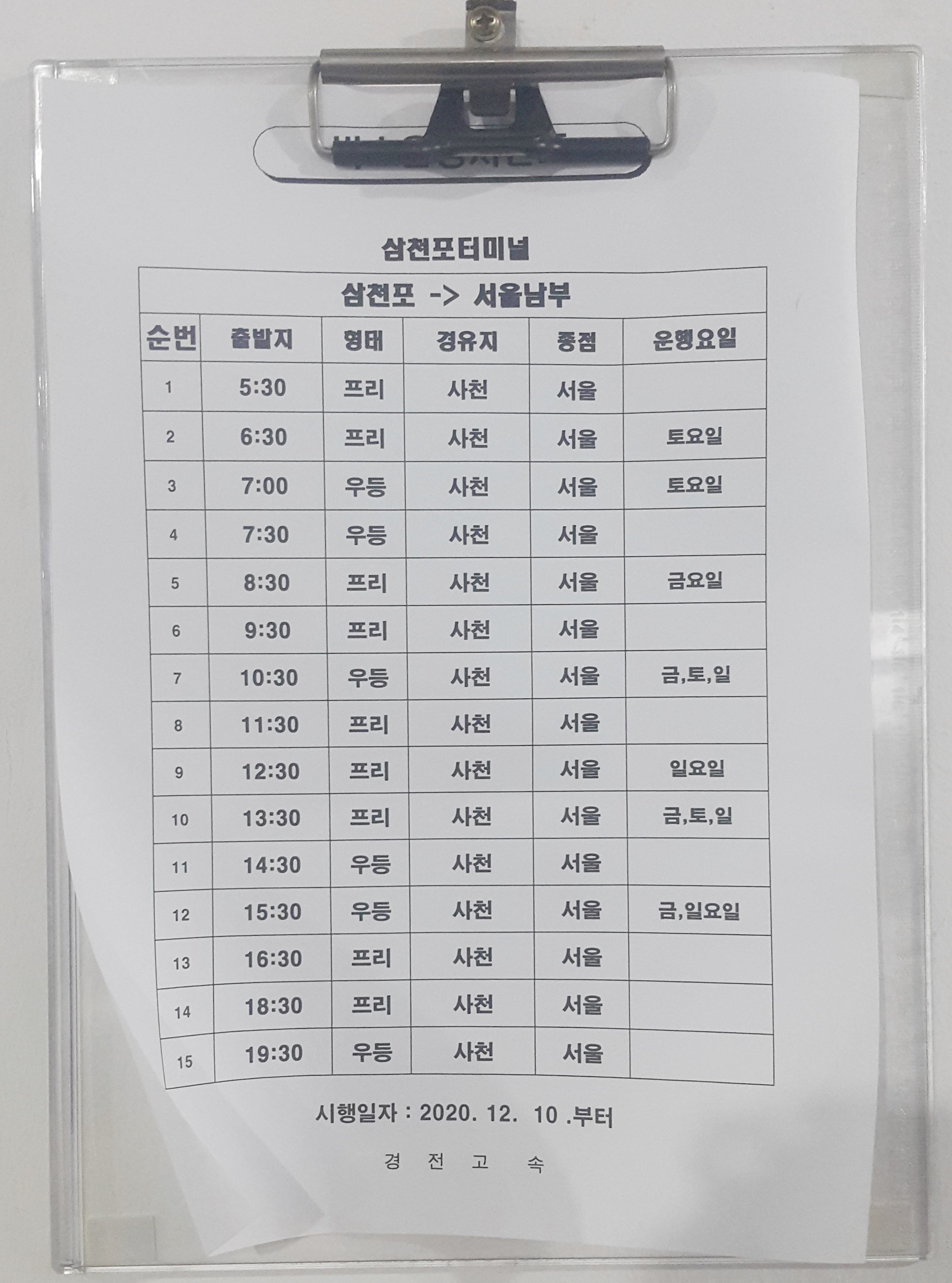 삼천포시외버스터미널 시간표 2021년 1월 워크뷰