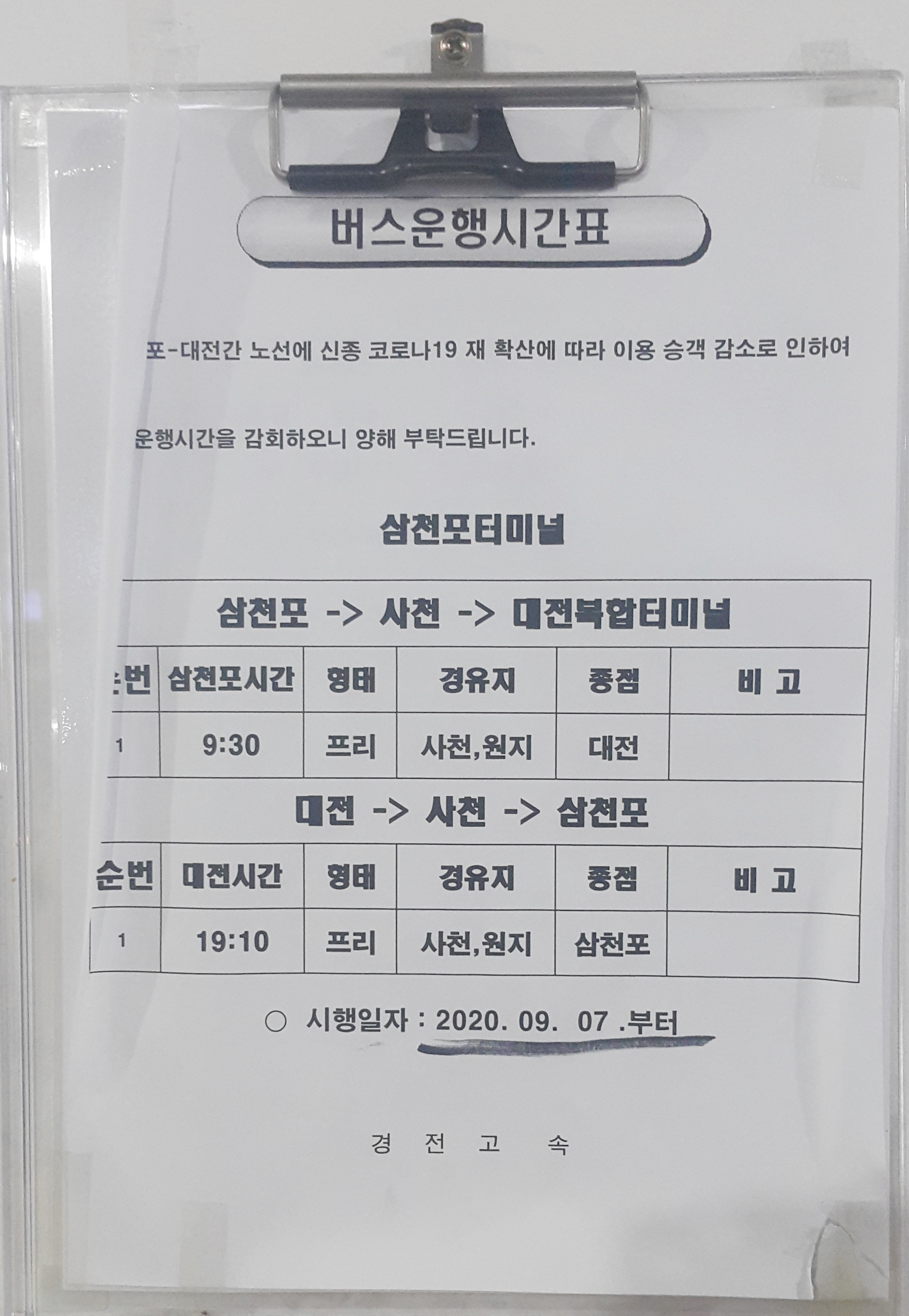 삼천포시외버스터미널 시간표 2021년 1월 워크뷰