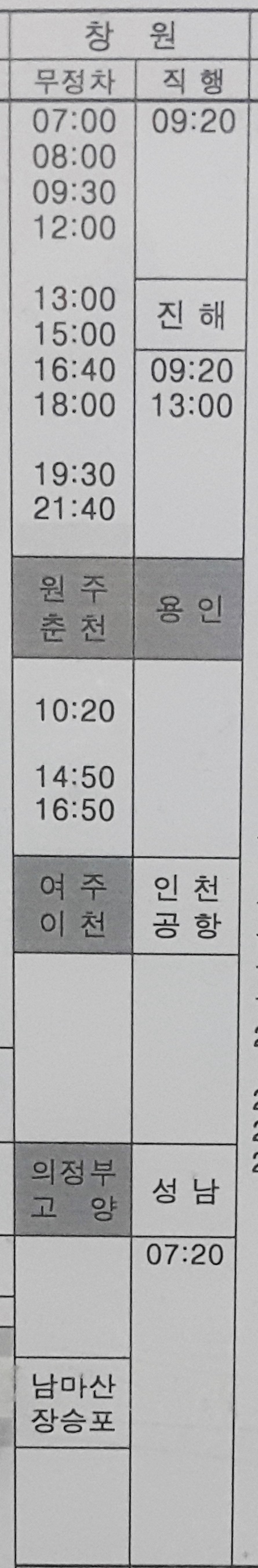 울산 출발 창원, 진해, 원주, 춘천, 성남 방면.