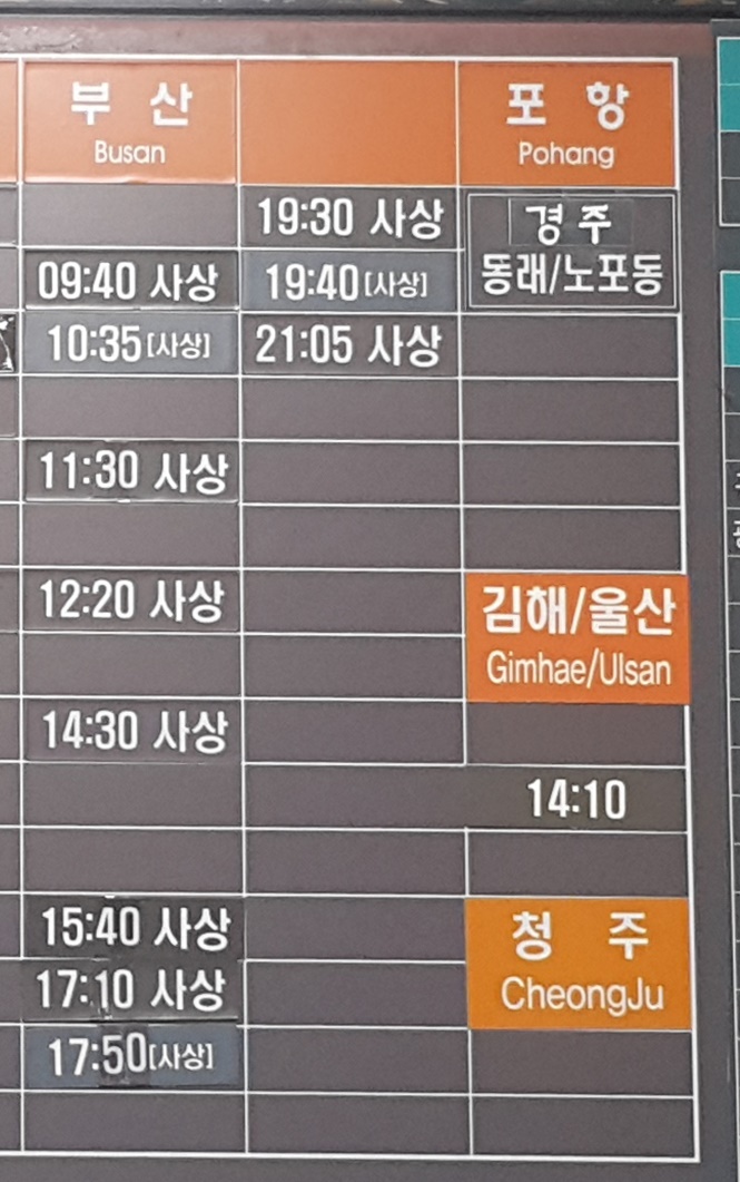 동광양 출발 부산 사상, 포항, 김해, 울산 방면.