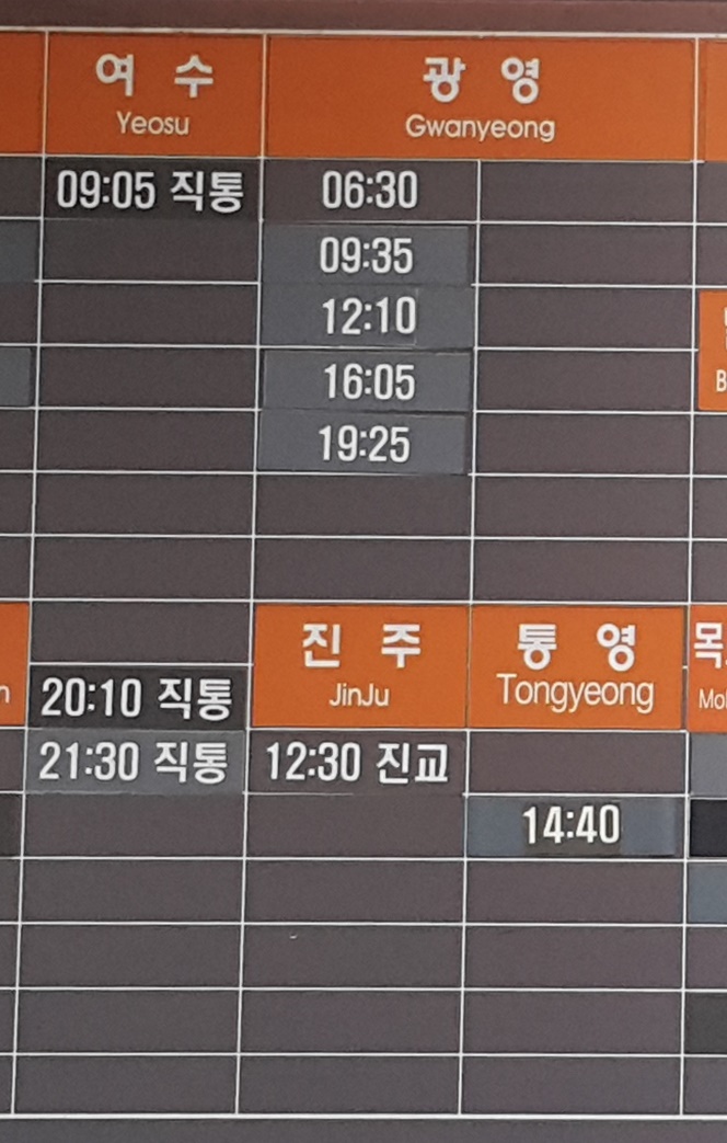 동광양 출발 여수, 광영, 진주, 통영 방면.