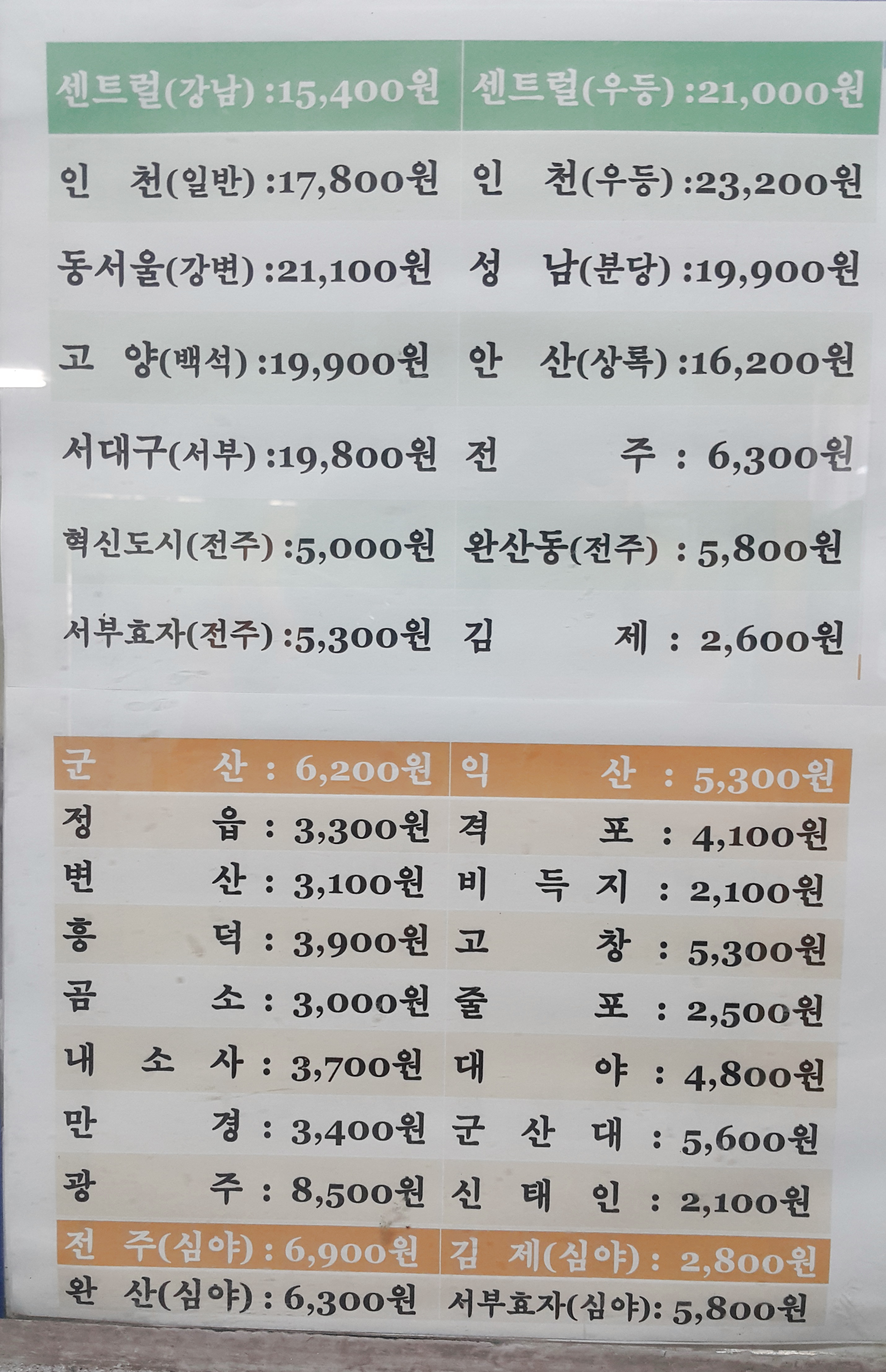 부안 출발 대구 서부, 익산, 군산, 군산대 방면.