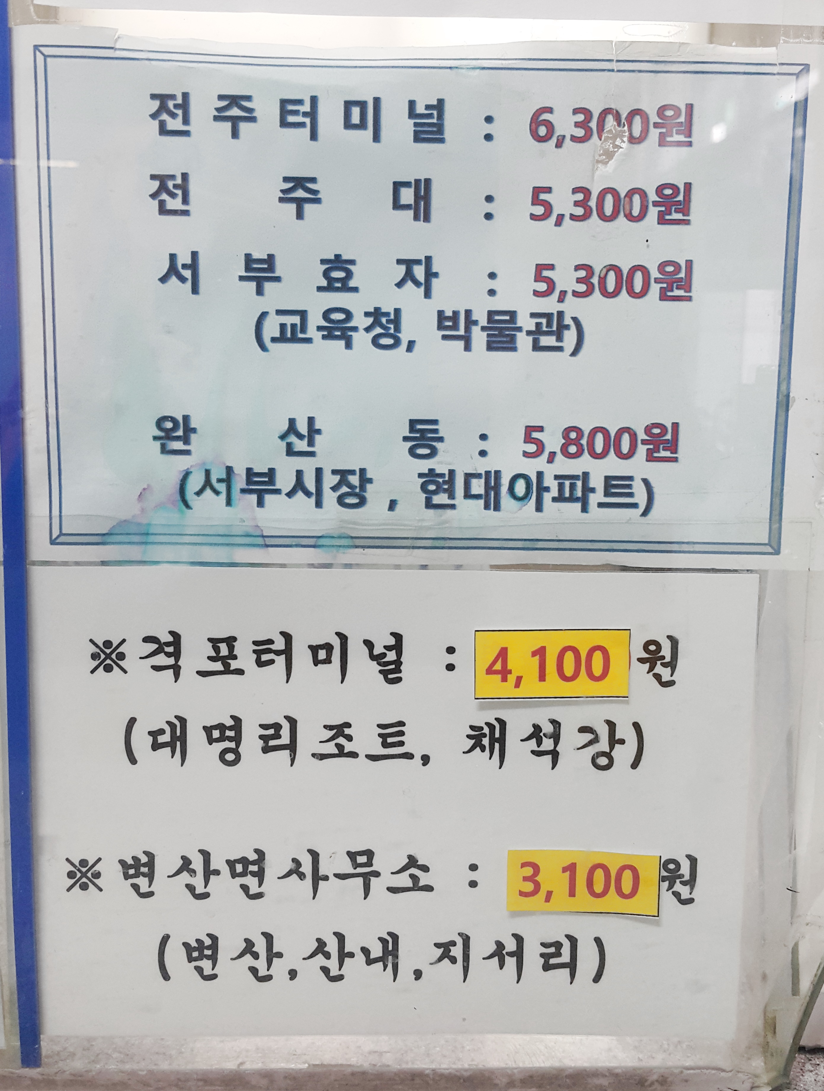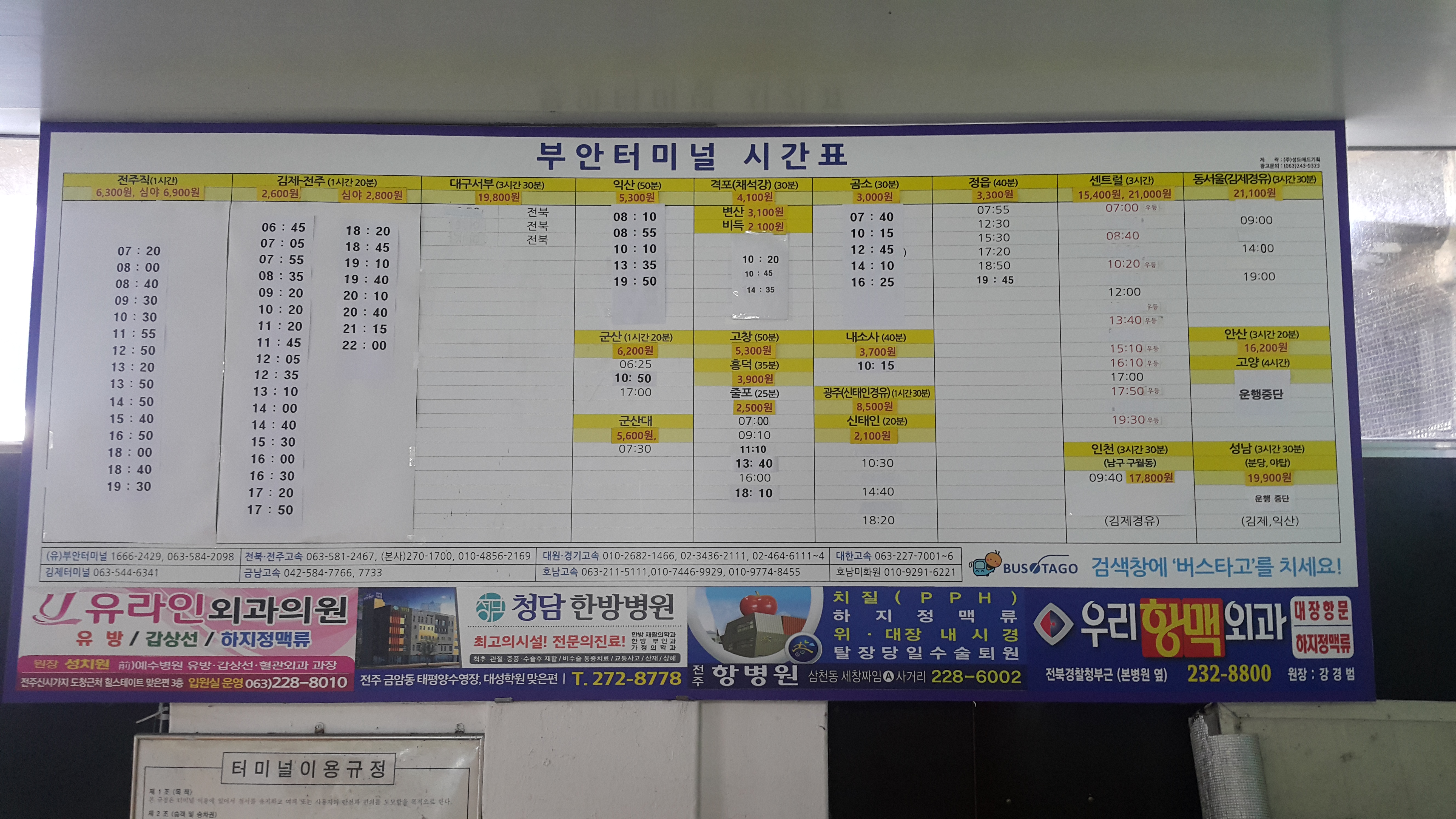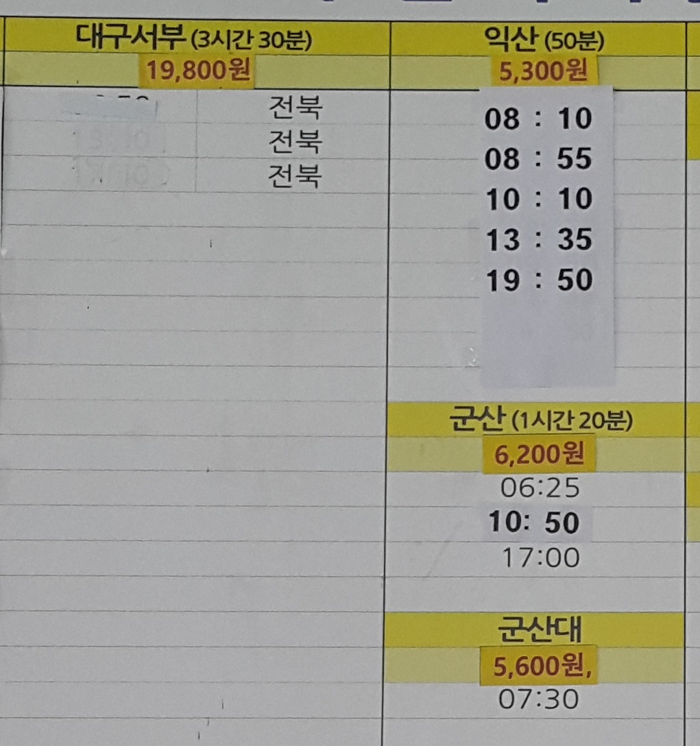 부안 출발 대구 서부, 익산, 군산, 군산대 방면.