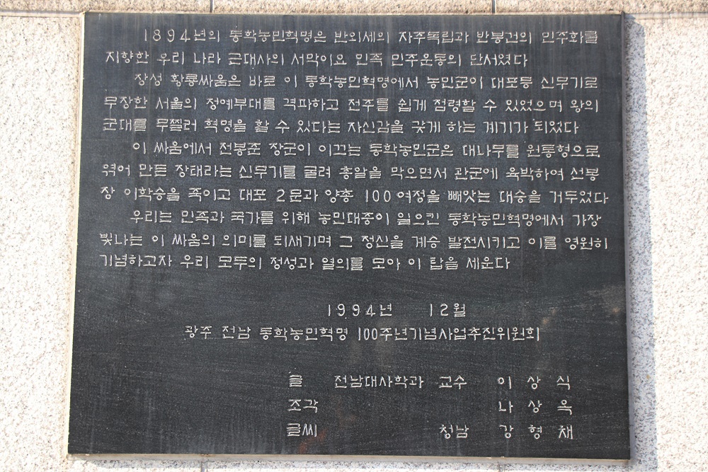 장성 여행에서 가 볼만한 곳으로 동학농민운동의 전적지가 있습니다.