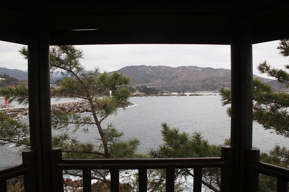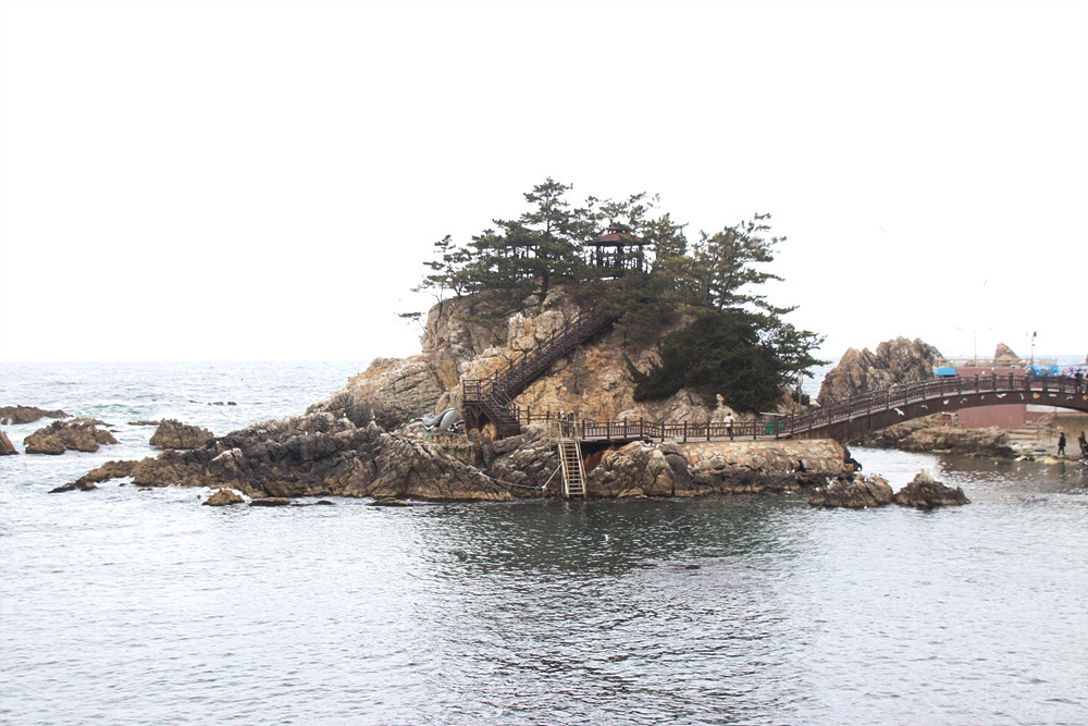 이어 바위섬들이 모여 있는 항 끝에는 정자와 산책길이 잘 꾸며져 있는데