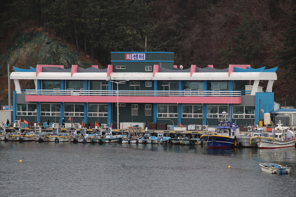 장호항 회센터의 건물이 미식가들을 불러 모으기 좋게 생겼네요,