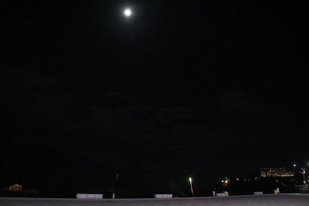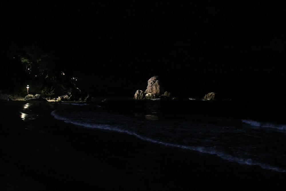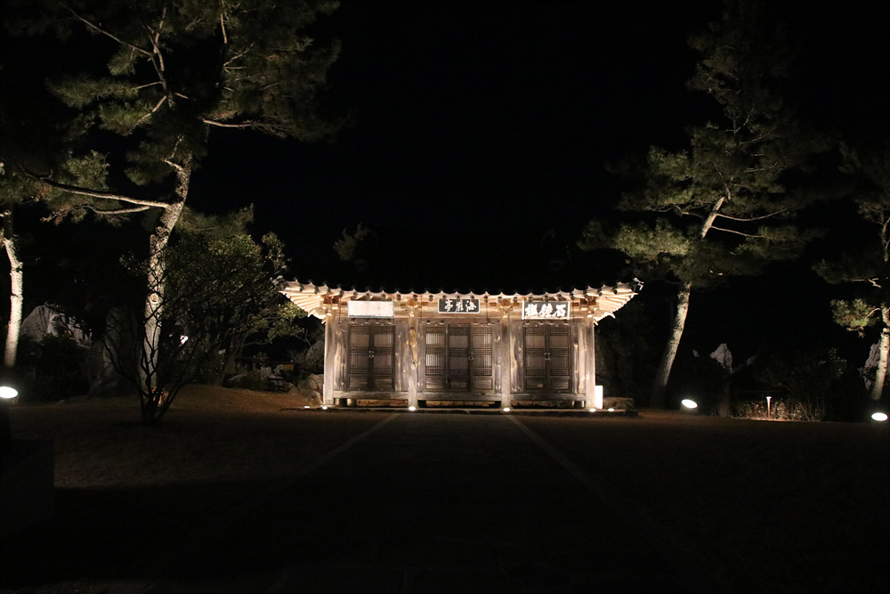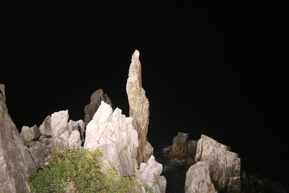 추암 포토존 뒤로 보이는 밝은 조명이 비추는 곳은 촛대바위 일대인데요