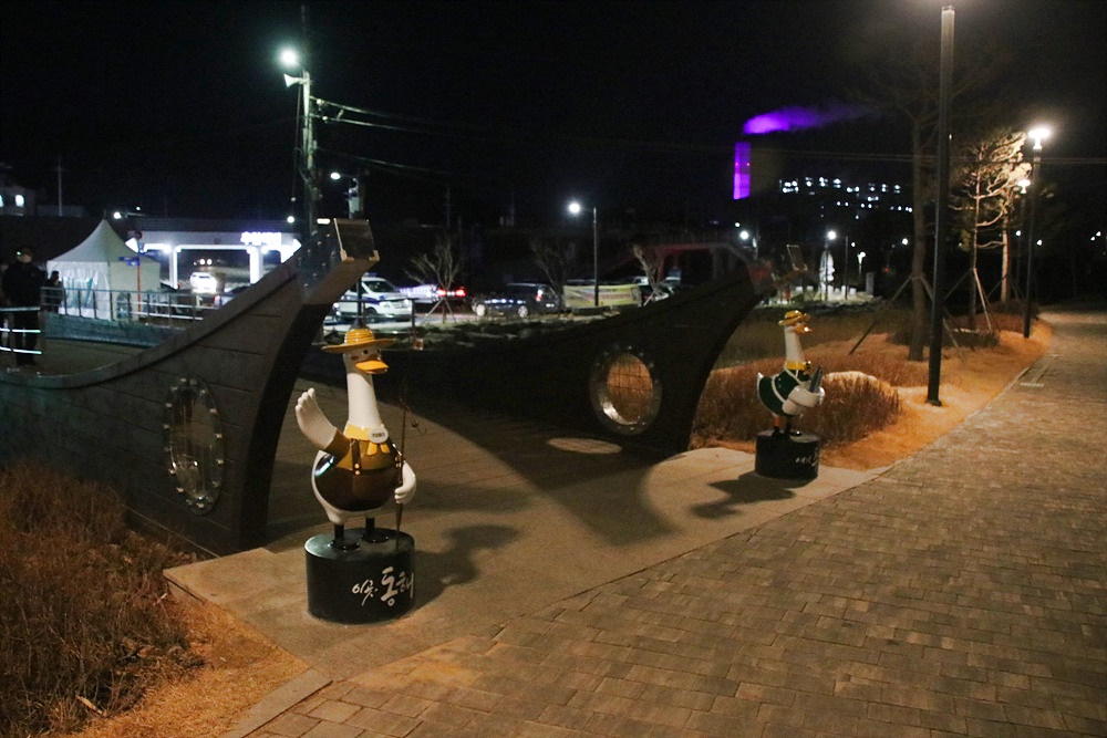 작은 다리를 건너는 입구에 귀여운 새 조형물이 반갑게 맞이하네요