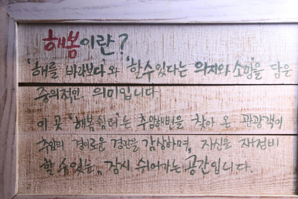이곳 '해봄 쉼터'는 추암해변을 찾아온 관광객이 추암의 경이로운 경관을 감상하며,