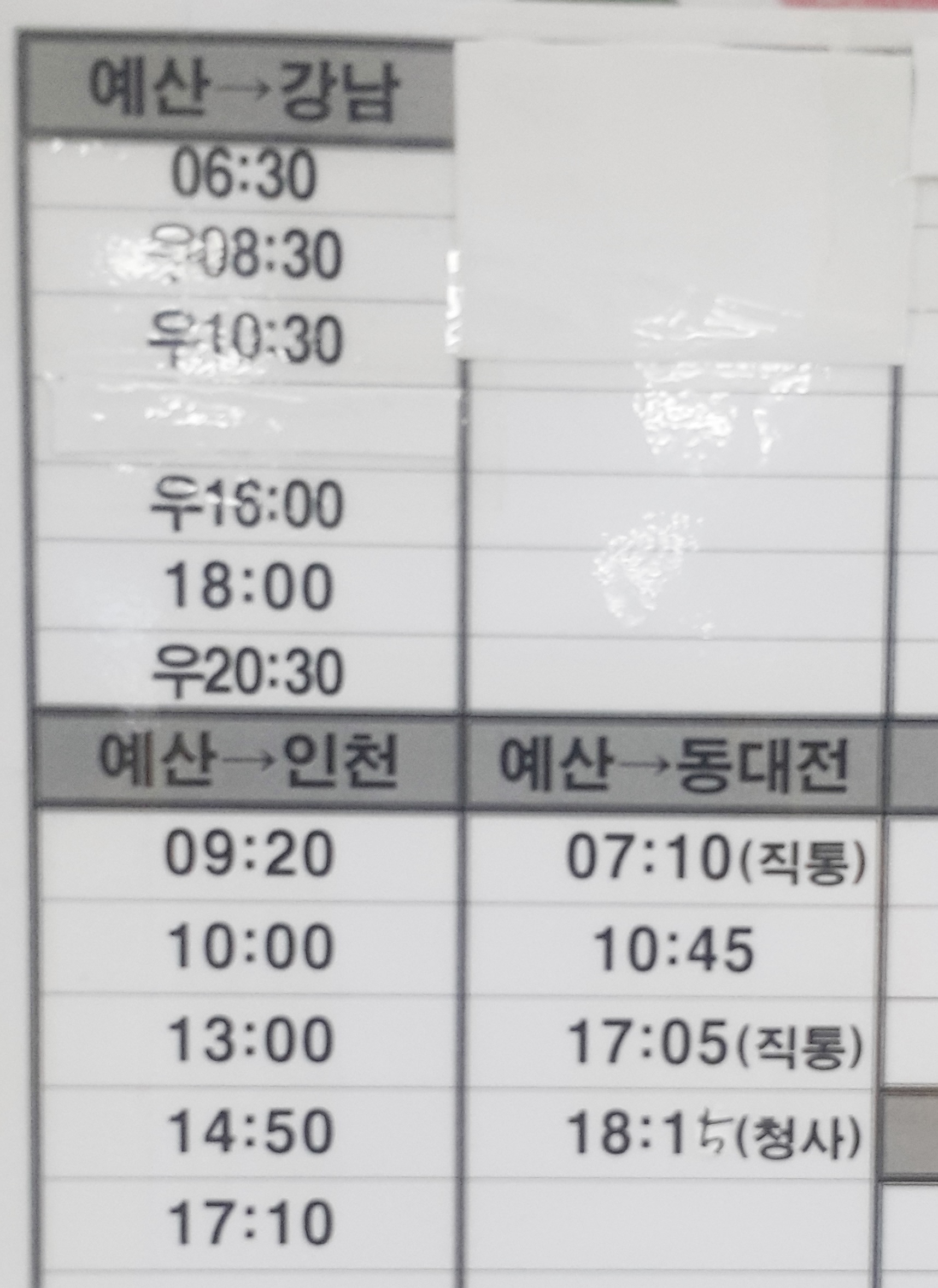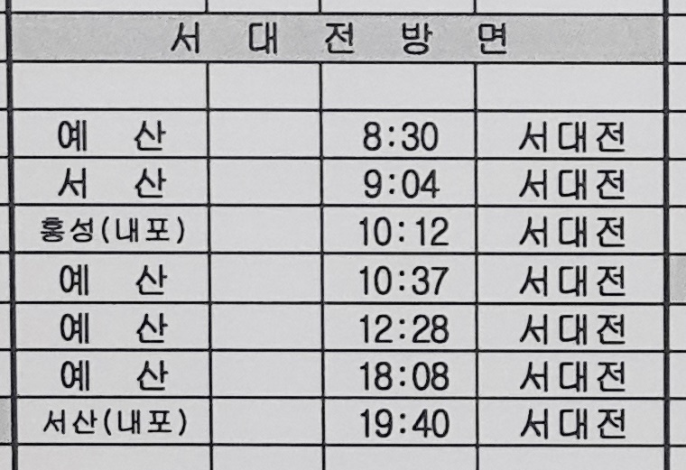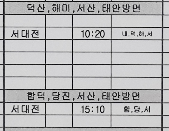 예산 출발 덕산, 해미, 서산, 태안 방면.