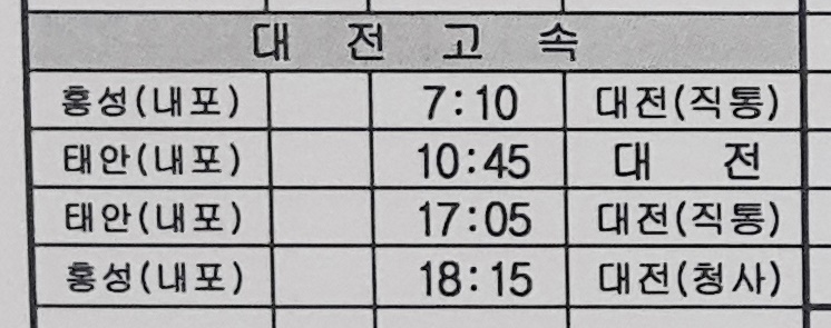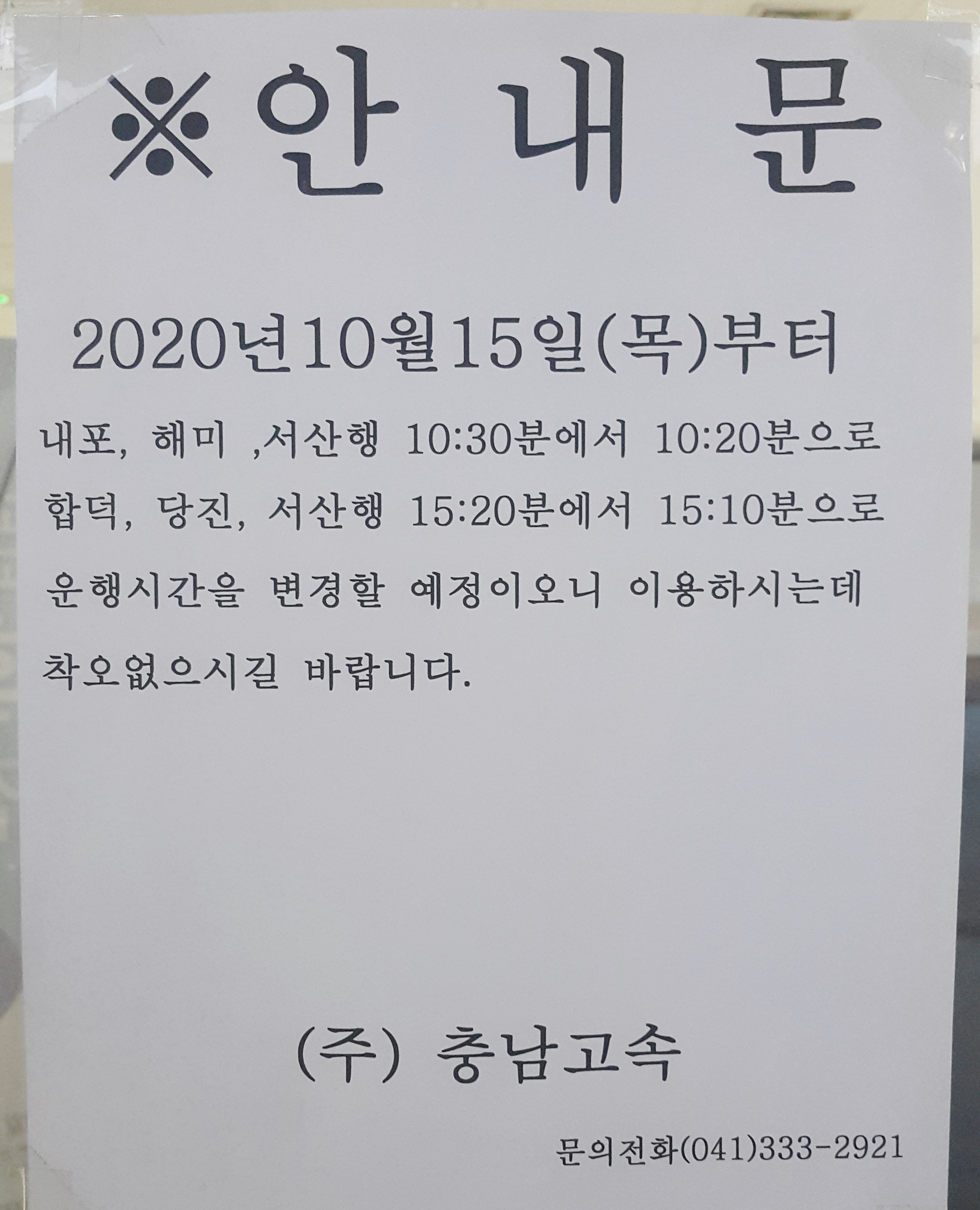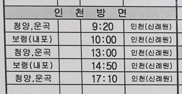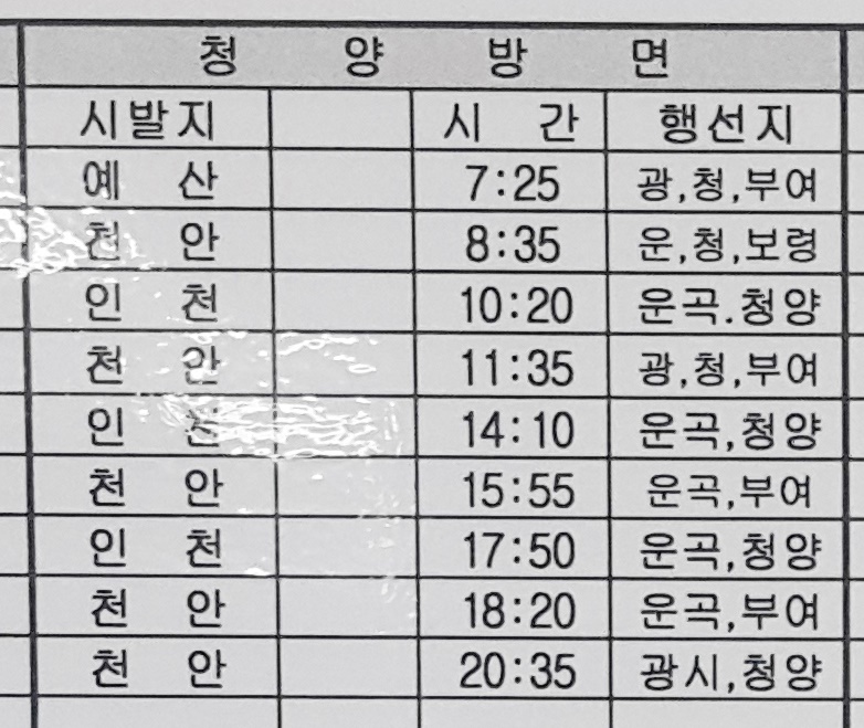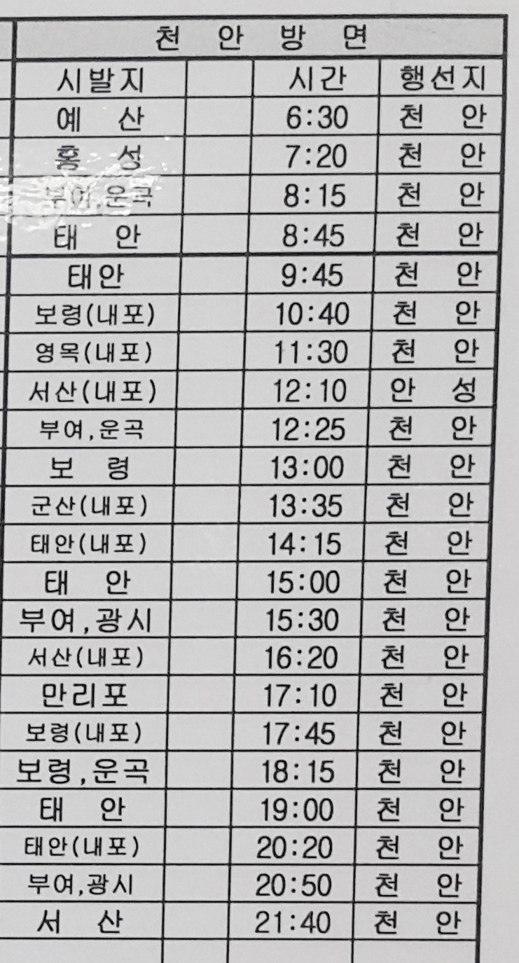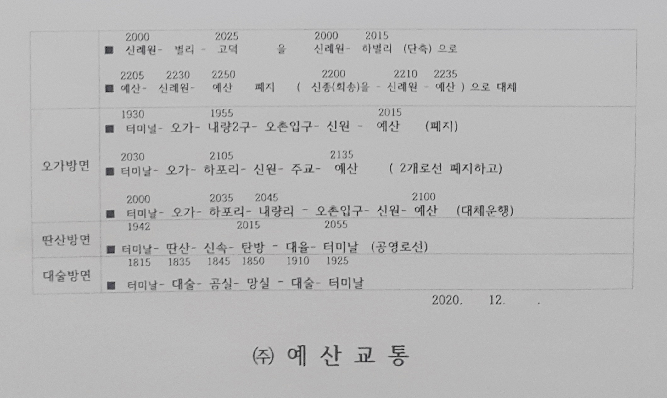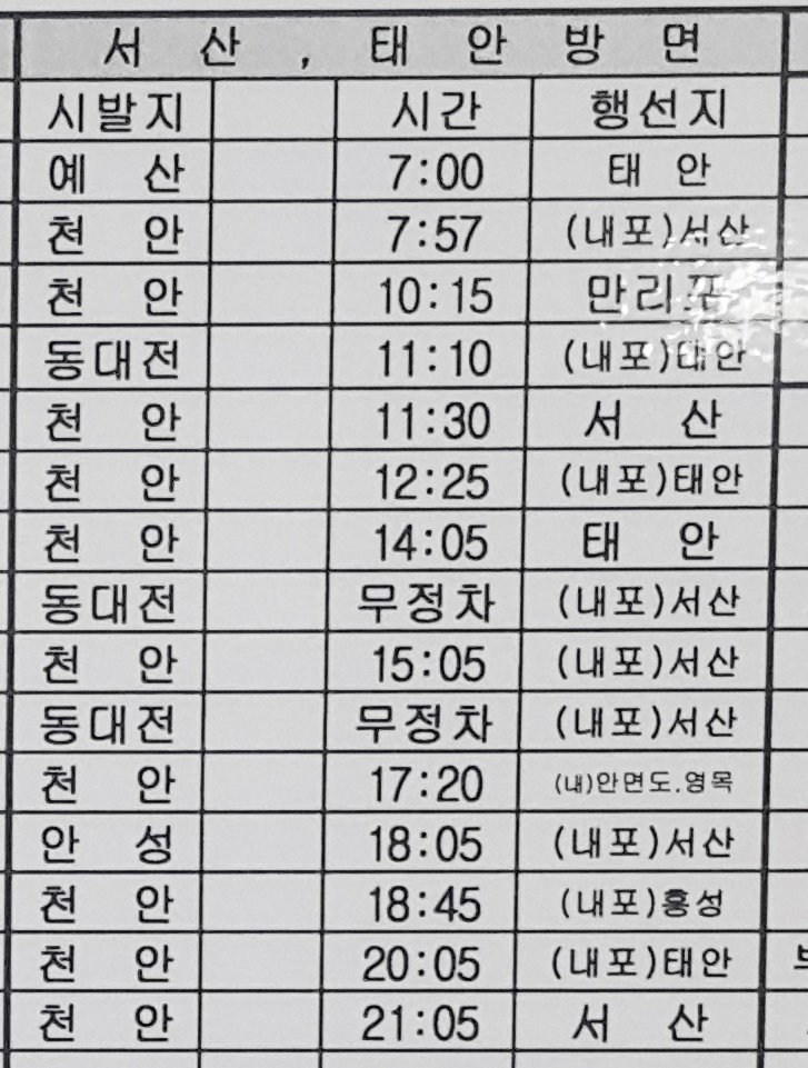 예산 출발 덕산, 해미, 서산, 태안 방면.