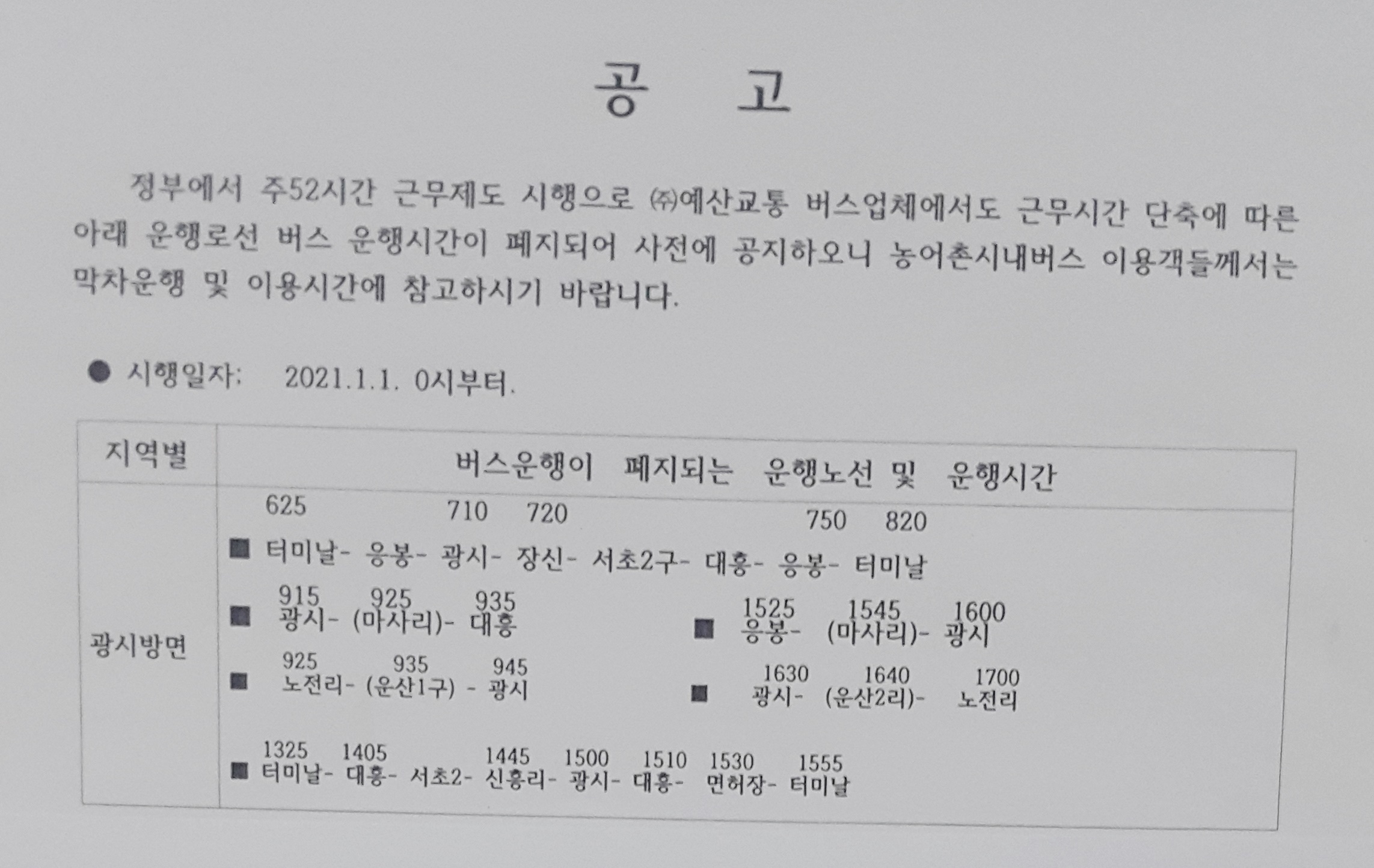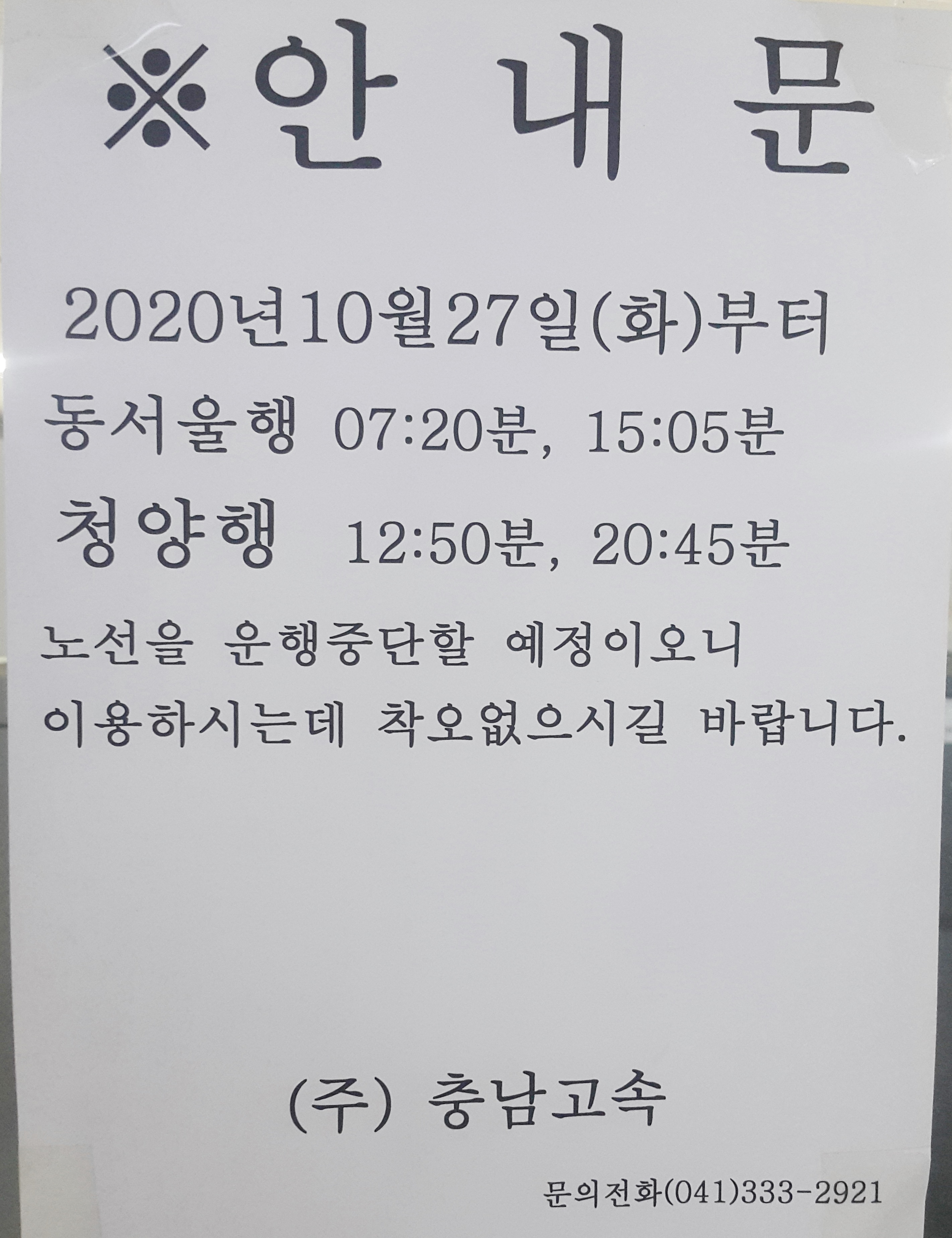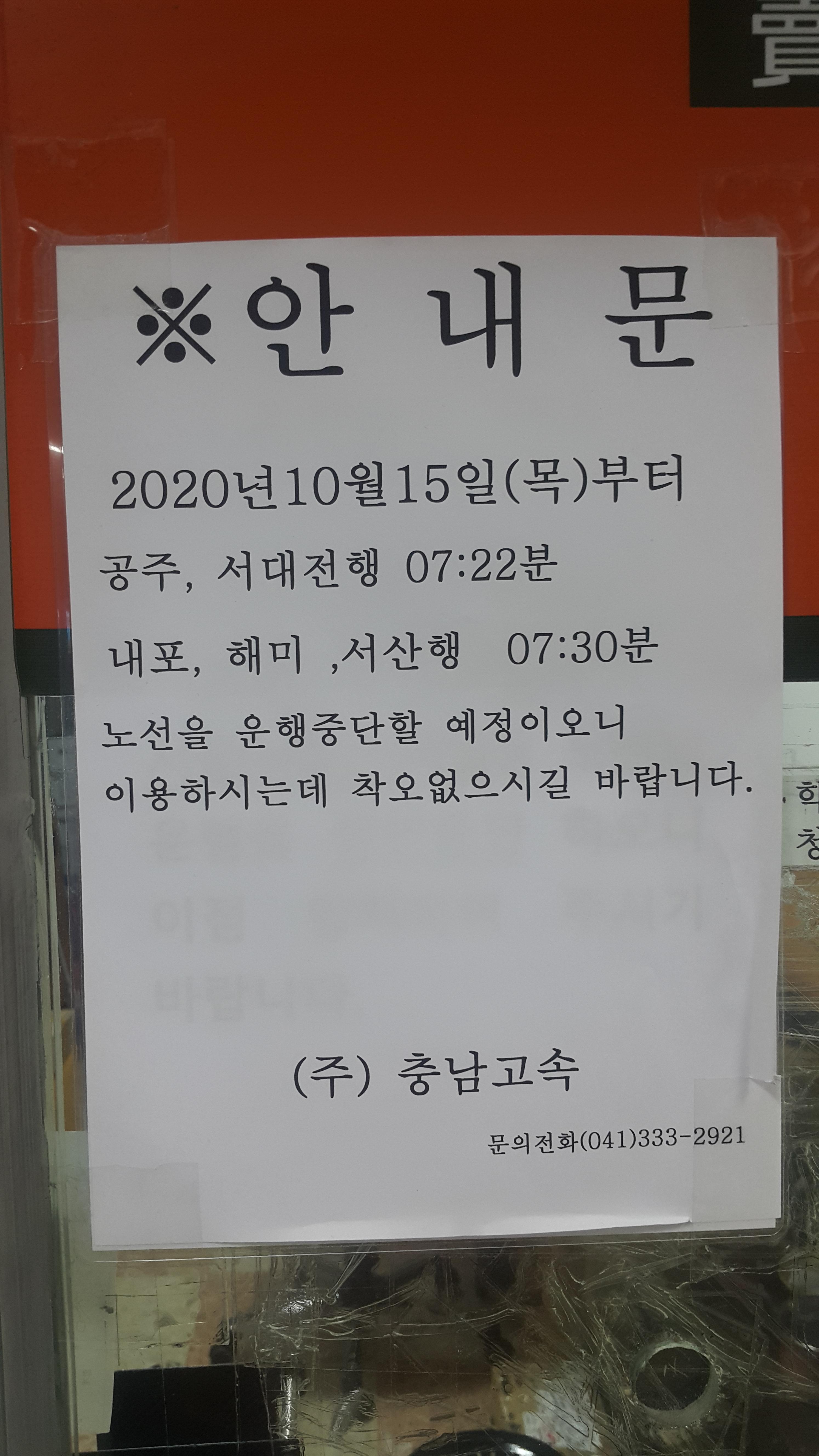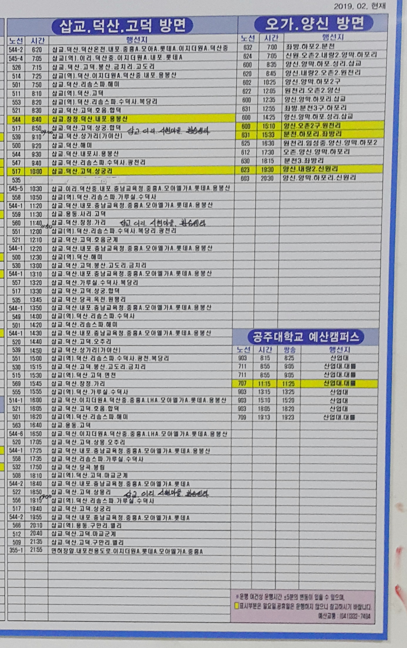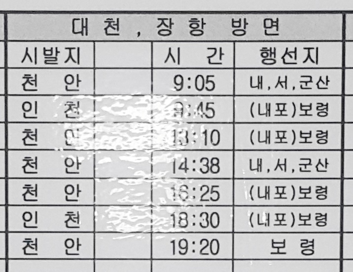 예산 출발 덕산, 해미, 서산, 태안 방면.