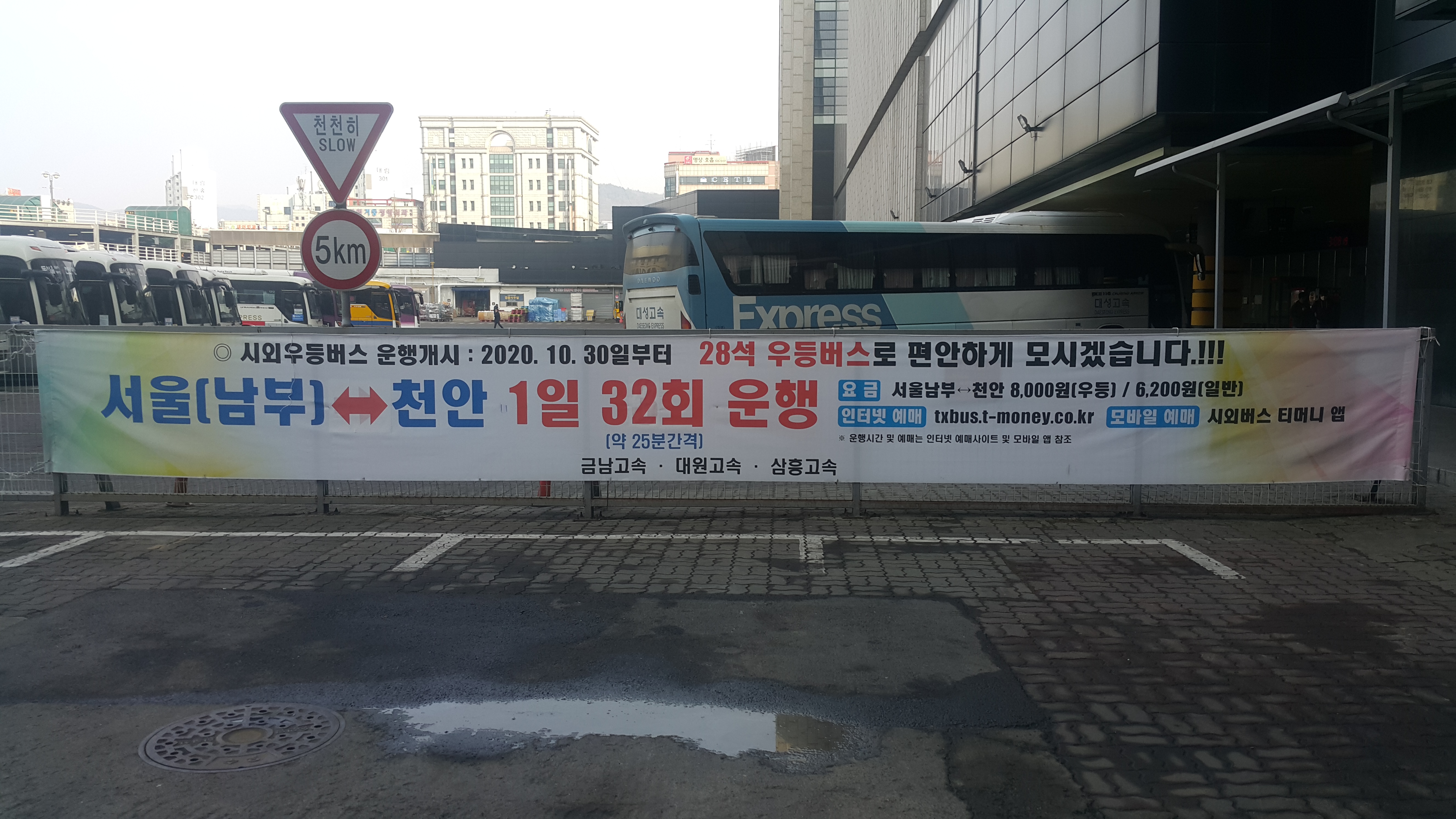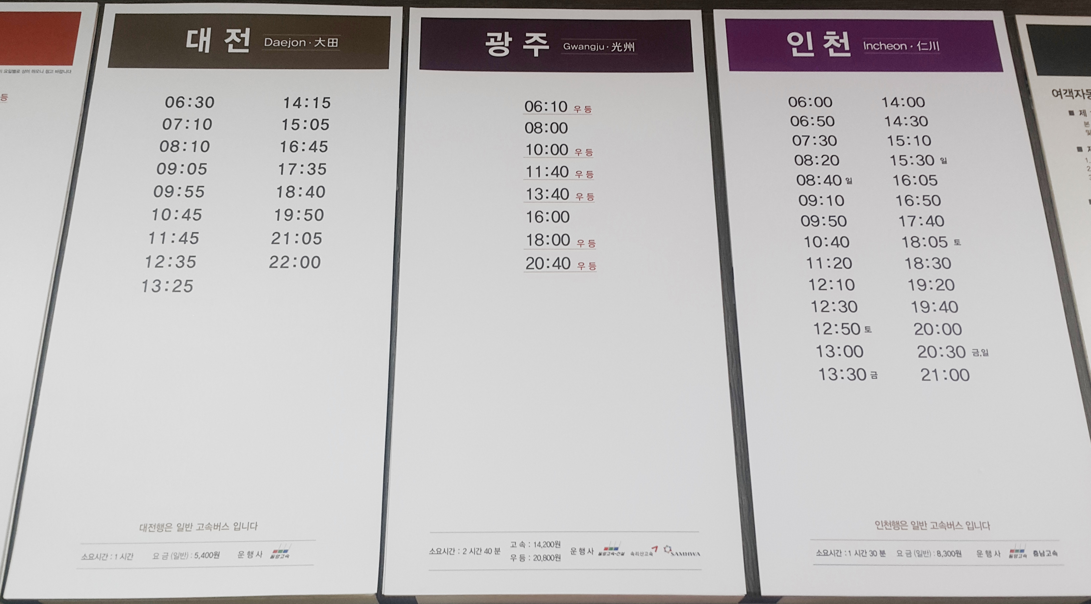 천안고속버스터미널 운행요금표