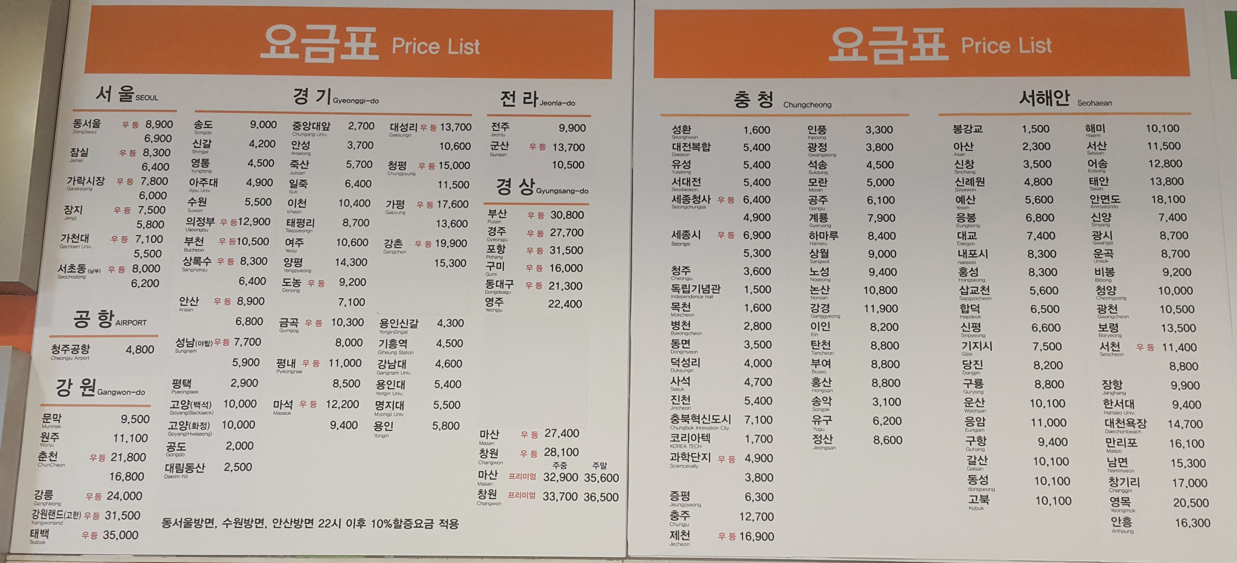 천안 출발 전라도, 경상도, 강원도, 전주, 부산, 진주, 구미, 동대구, 마산, 창원, 춘천, 경주, 포항, 강릉 방면.
