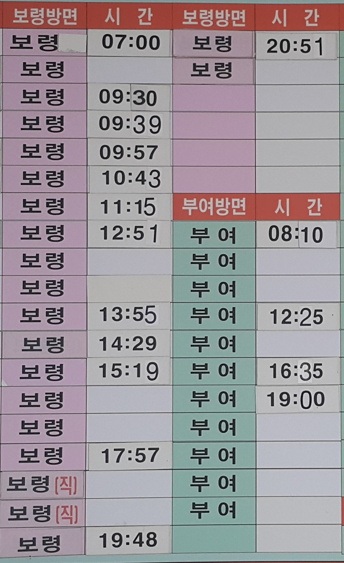 청양 출발 서대전, 동대전, 보령, 천안, 부여, 홍성 방면.