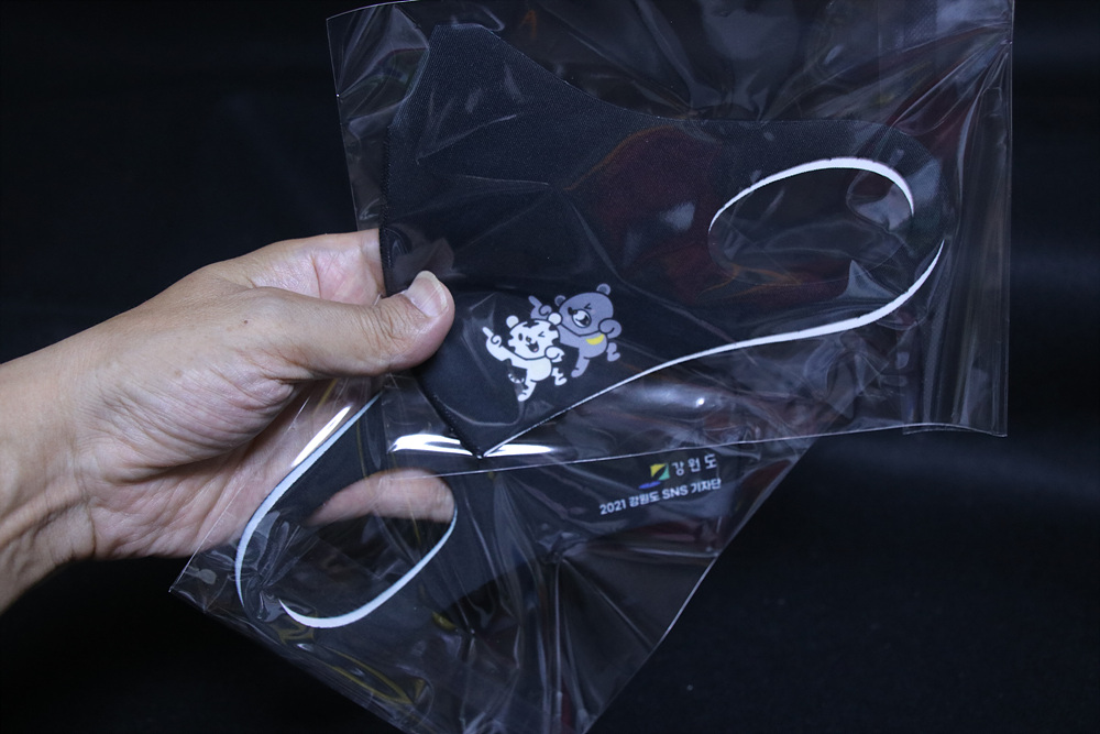 마스크에는 강원도 SNS 기자단이 적혀있어 자랑스럽네요
