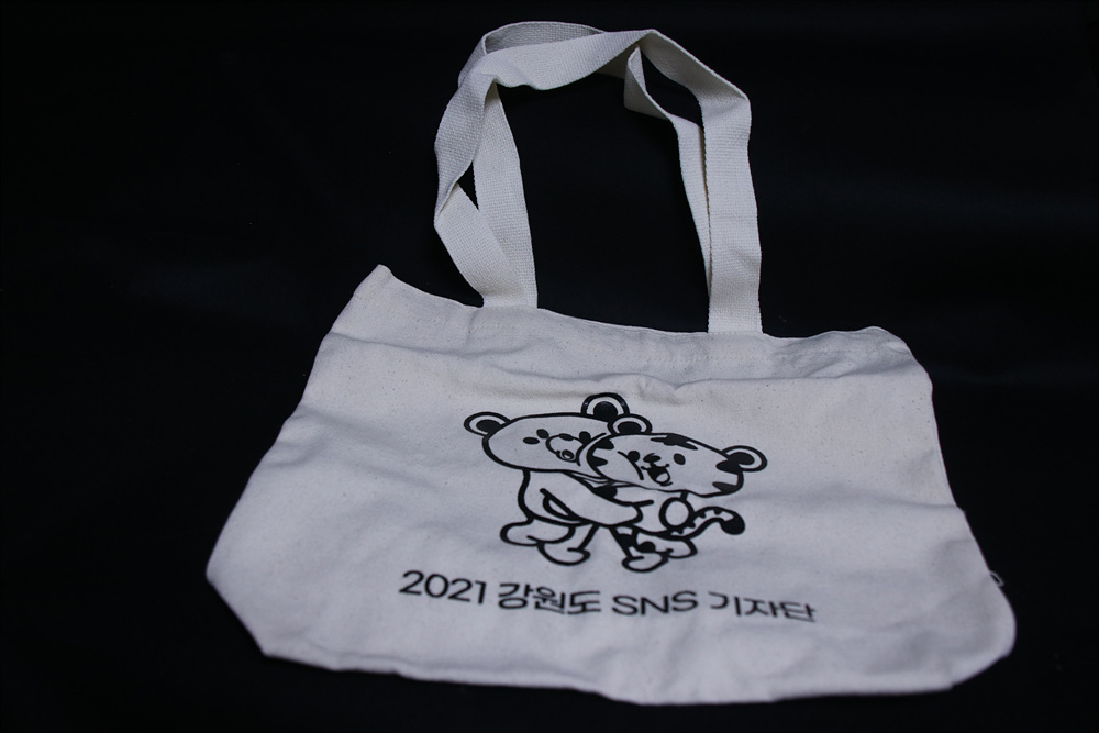 가방에도 2021 강원도 SNS 기자단이라는 글이 적혀 있어서