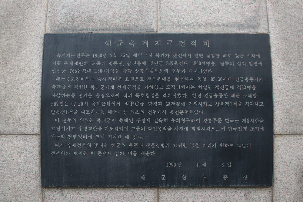 옥계지구에는 당시의 전투를 기념하는 기념비가 세워져 있습니다.