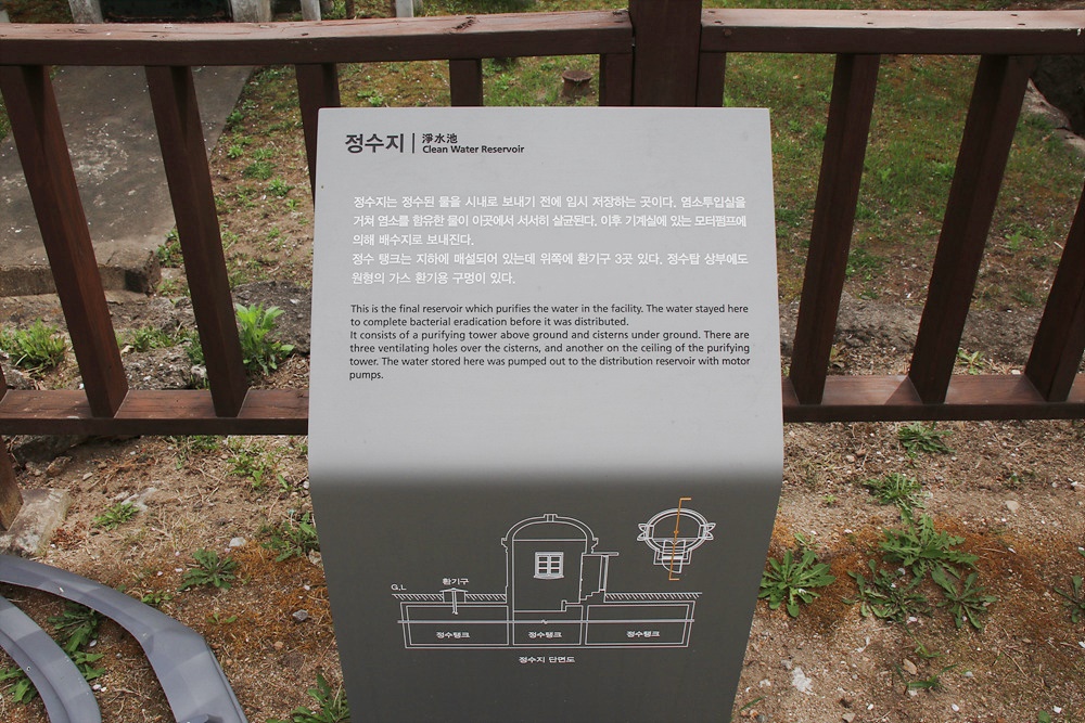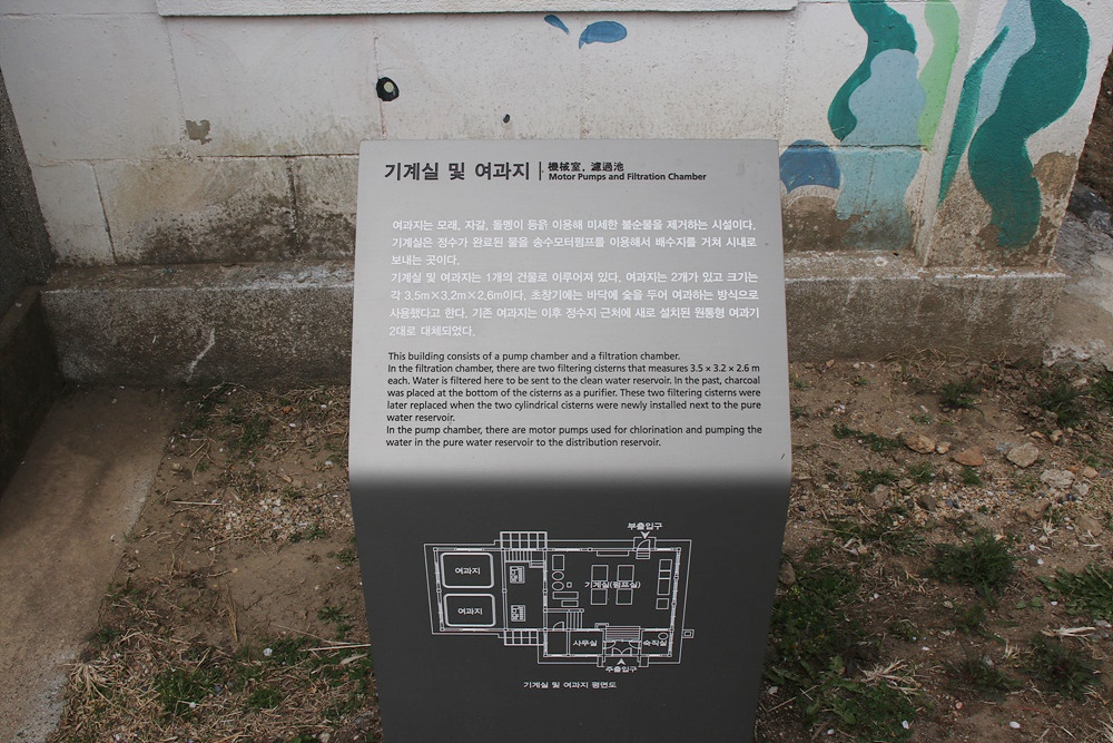 여과지, 정수지, 배수지, 염소투입실 등으로 이루어져 있습니다.