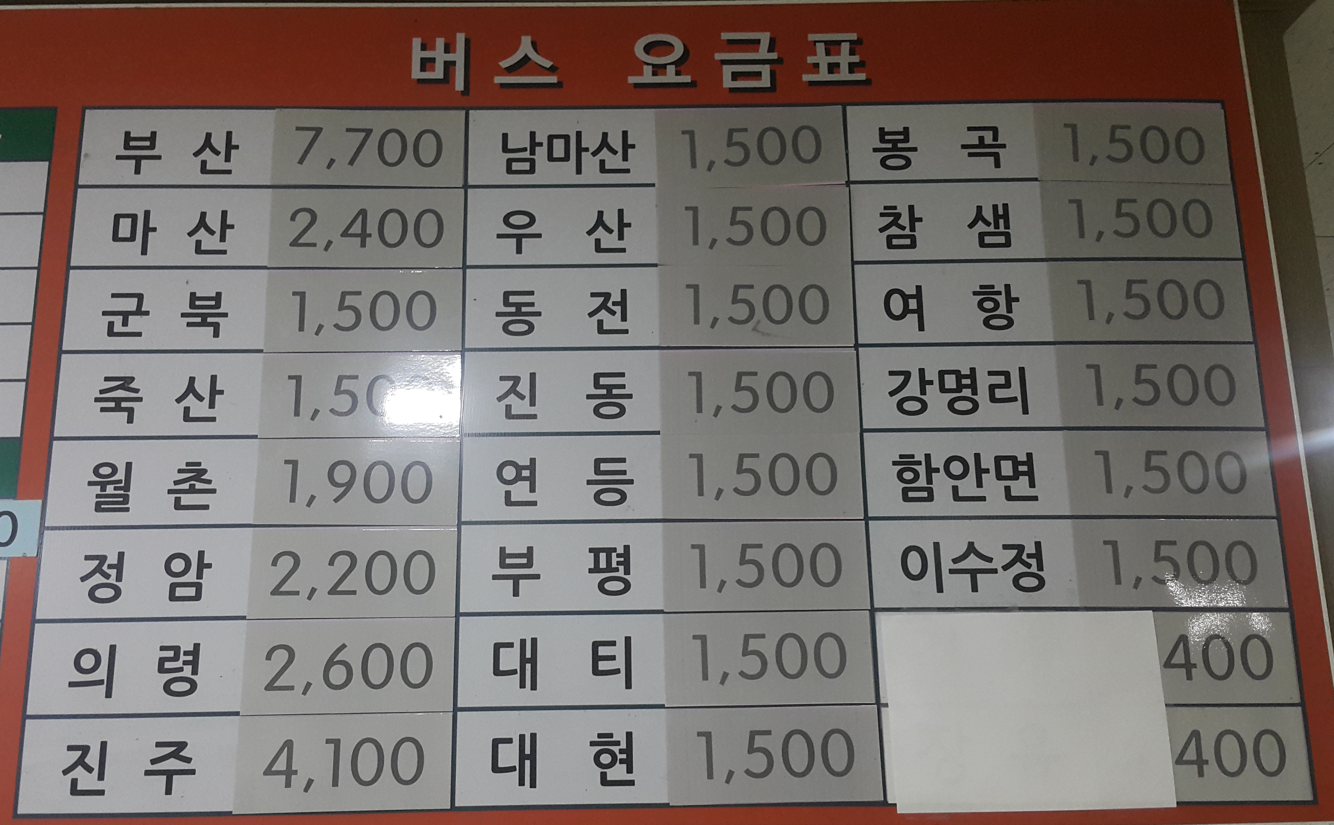 함안 출발 마산, 춘곡, 대산, 정곡,파수, 입곡, 가야동 방면.