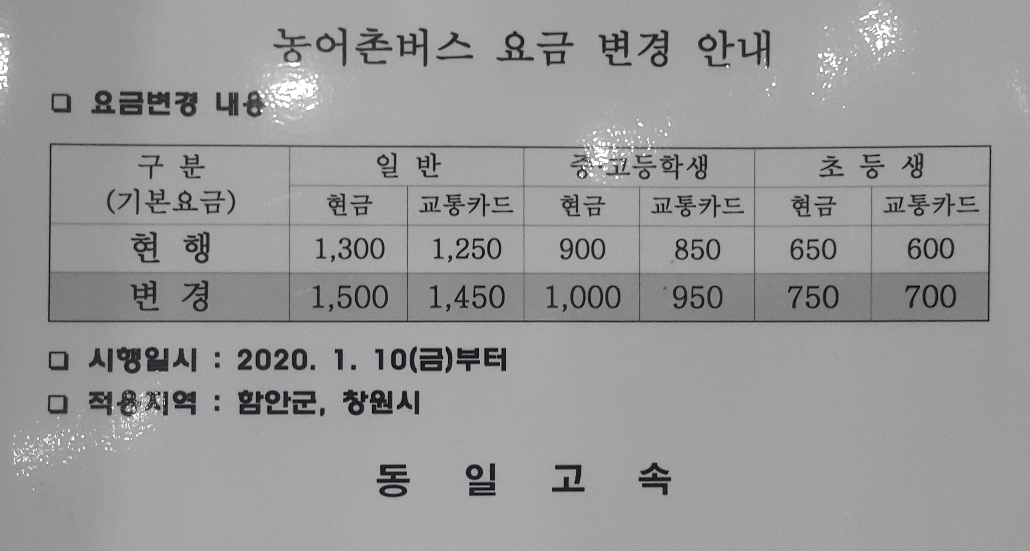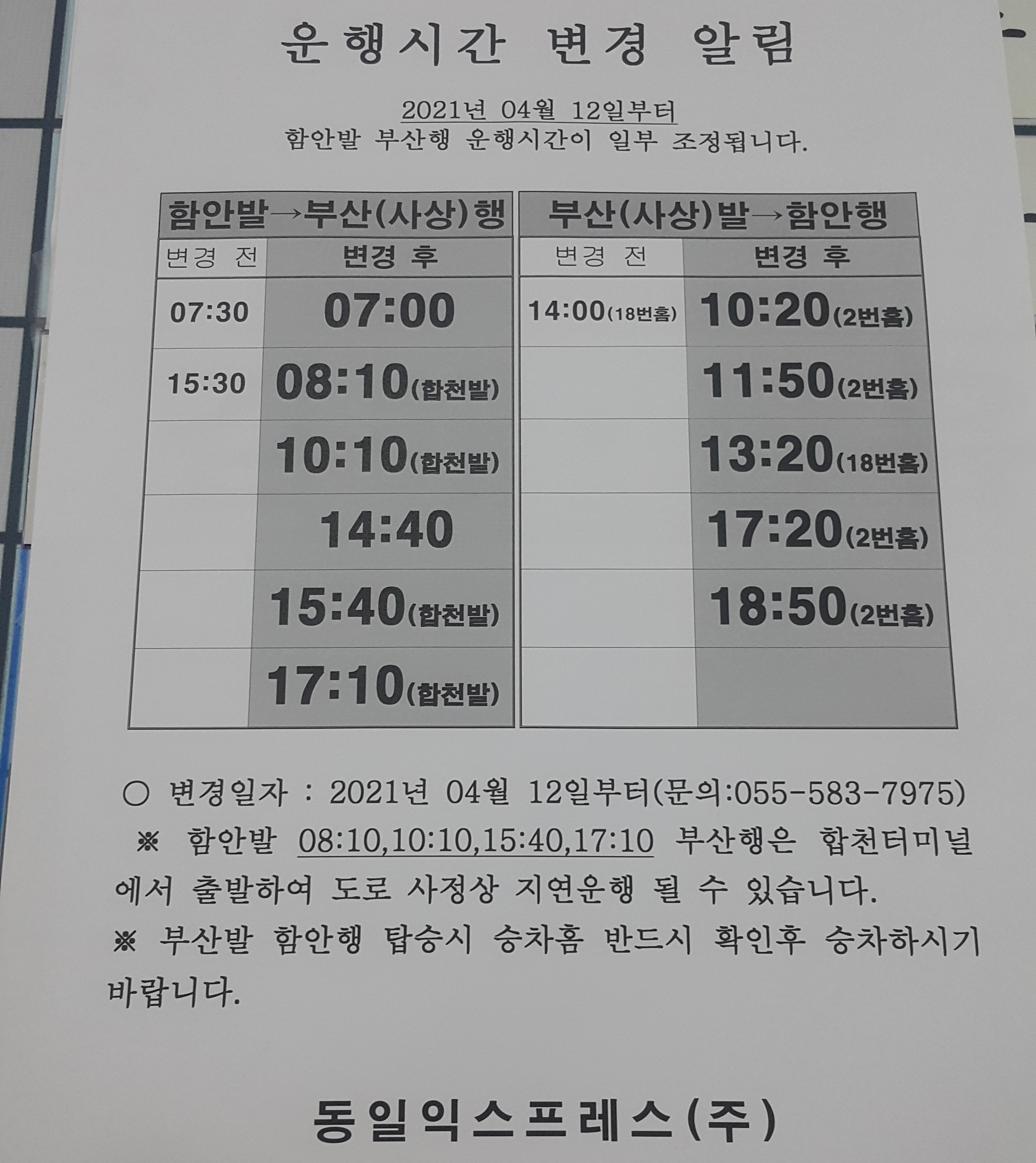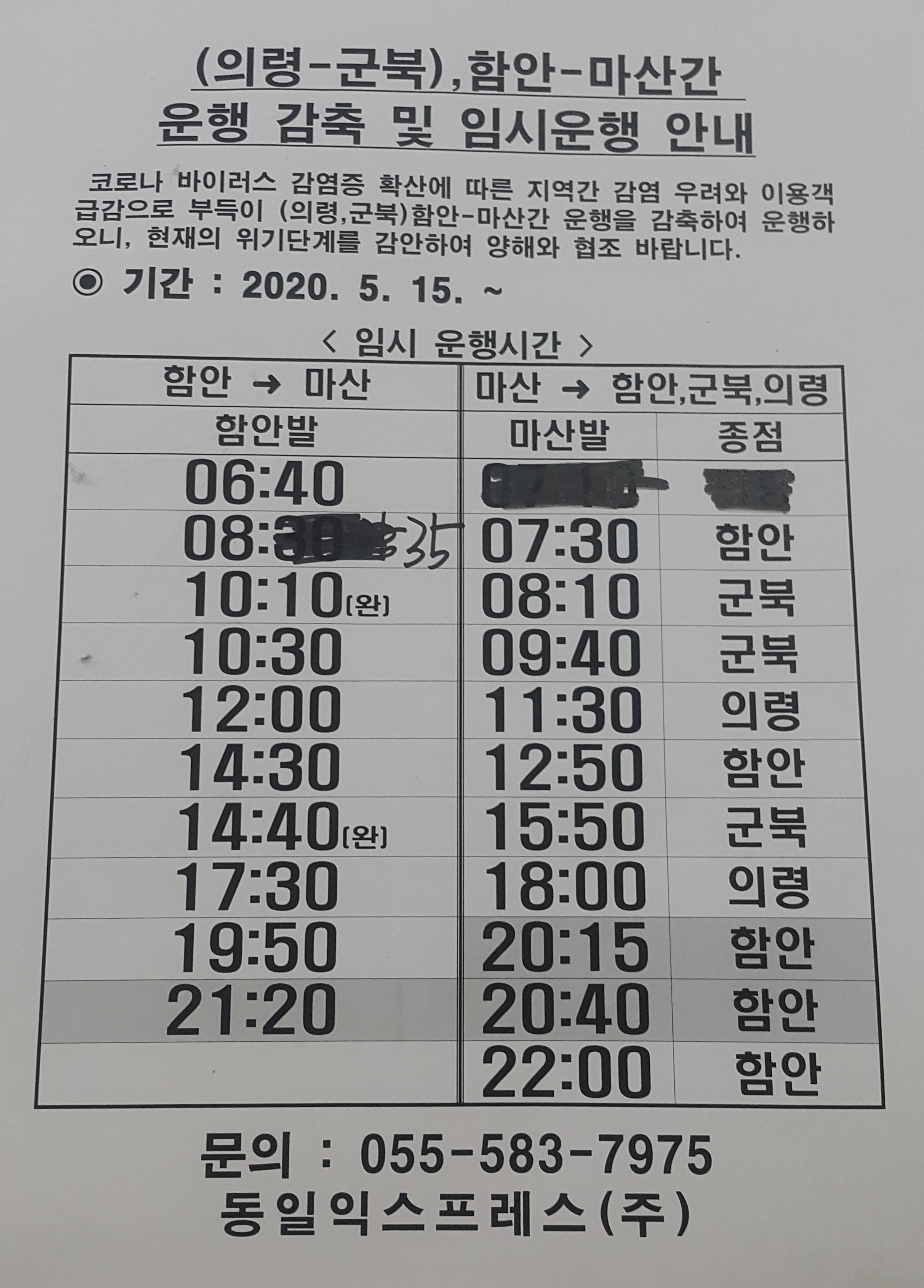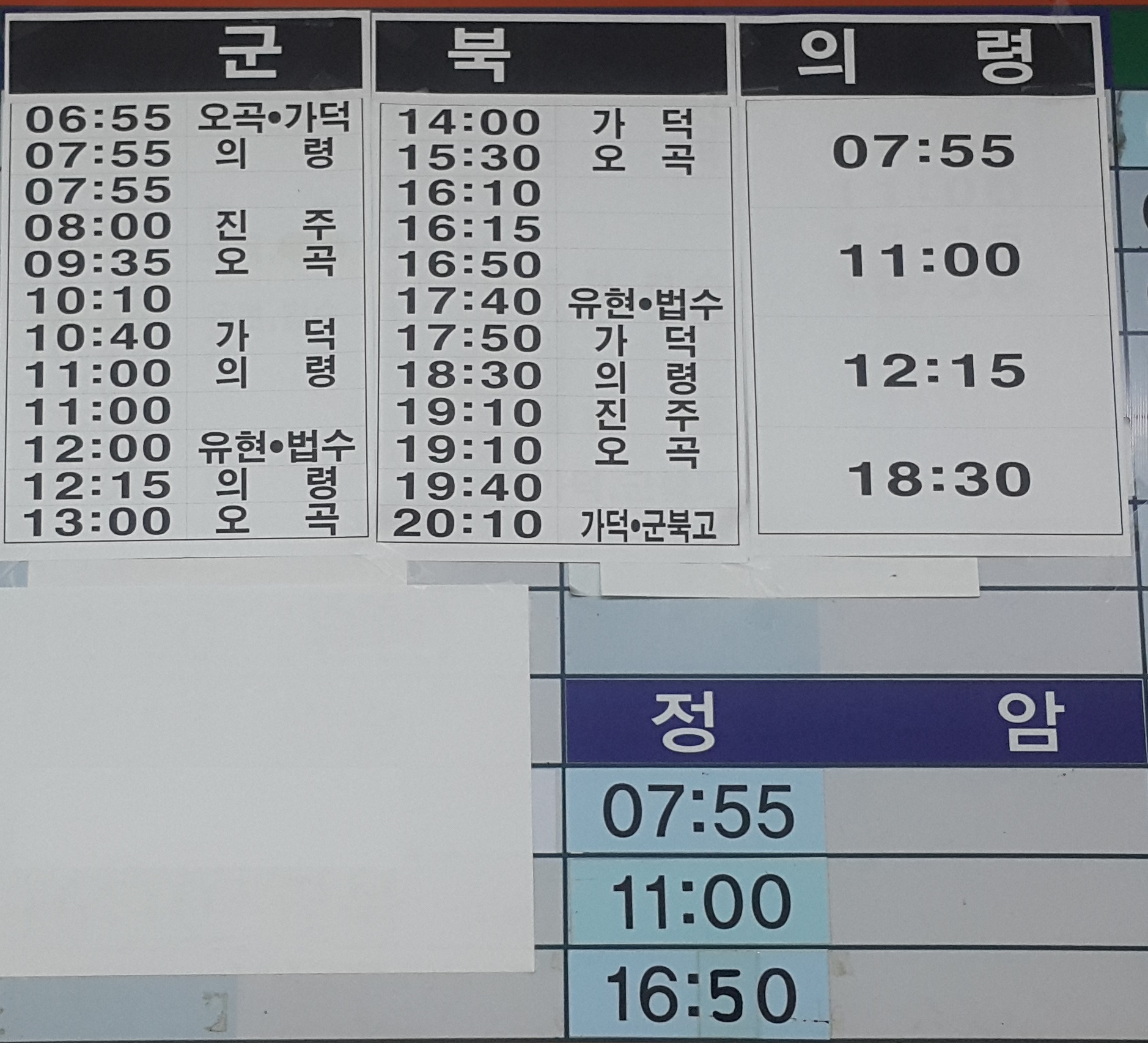 함안 출발 마산, 춘곡, 대산, 정곡,파수, 입곡, 가야동 방면.