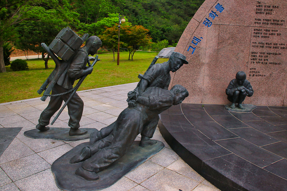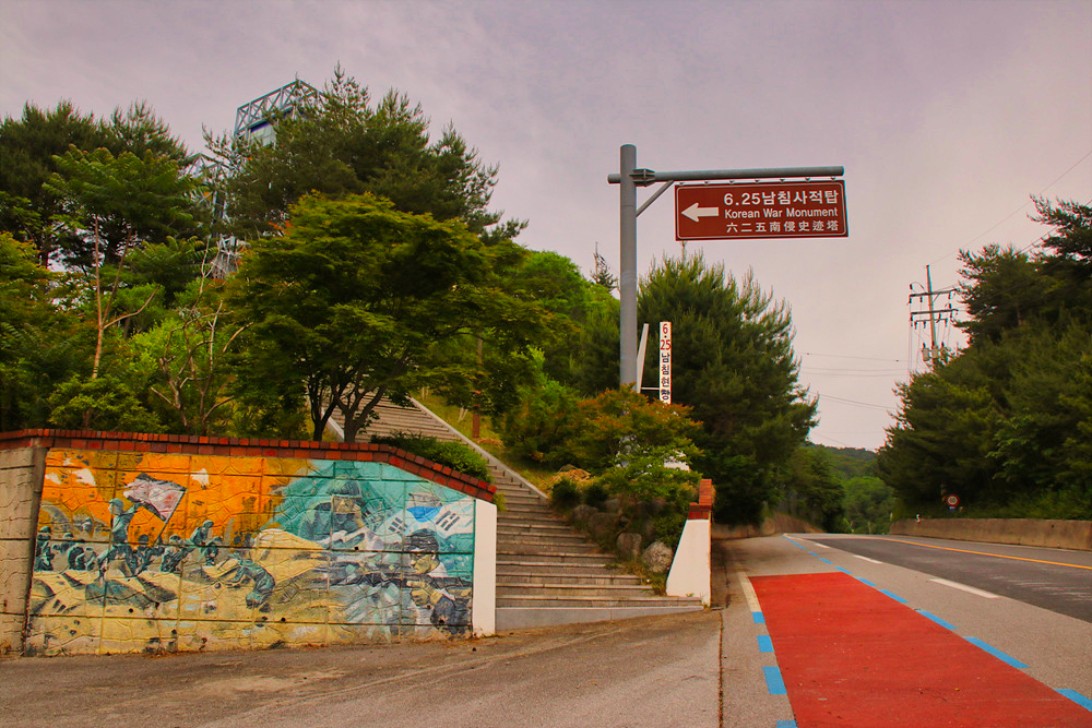 계단 옆에 있는 기념 조형물에는 이곳이 6.25 남침 현장이며