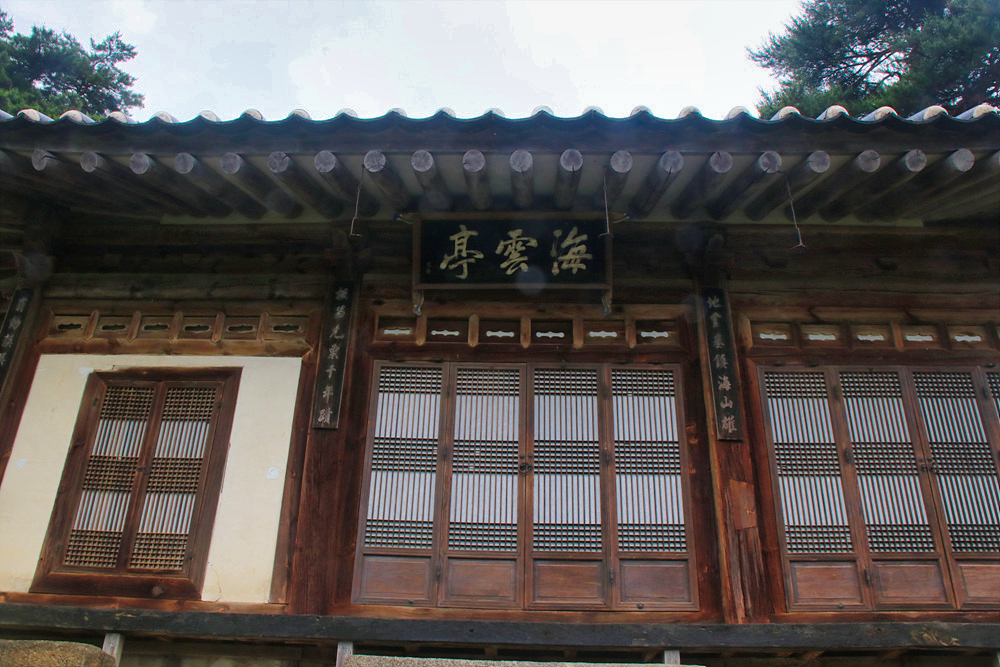 건물 앞에 걸린 '해운정'이라는 현판은 송시열의 글씨이고, 건물 안에는 경호어촌과 해운소정이라는 글귀는 중종 32년(1537)명나라 사신 공용정과 오희명이 쓴 글씨가 있다고 하였는데 오늘은 모든 문이 닫혀 있어 아쉬웠습니다.