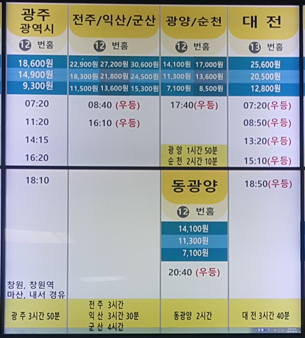 12번홈 광주광역시, 전주, 익산, 군산, 광양, 동광양, 순천 방면.