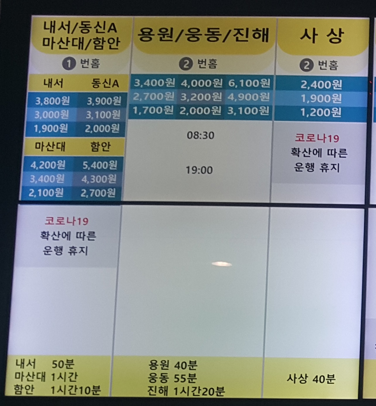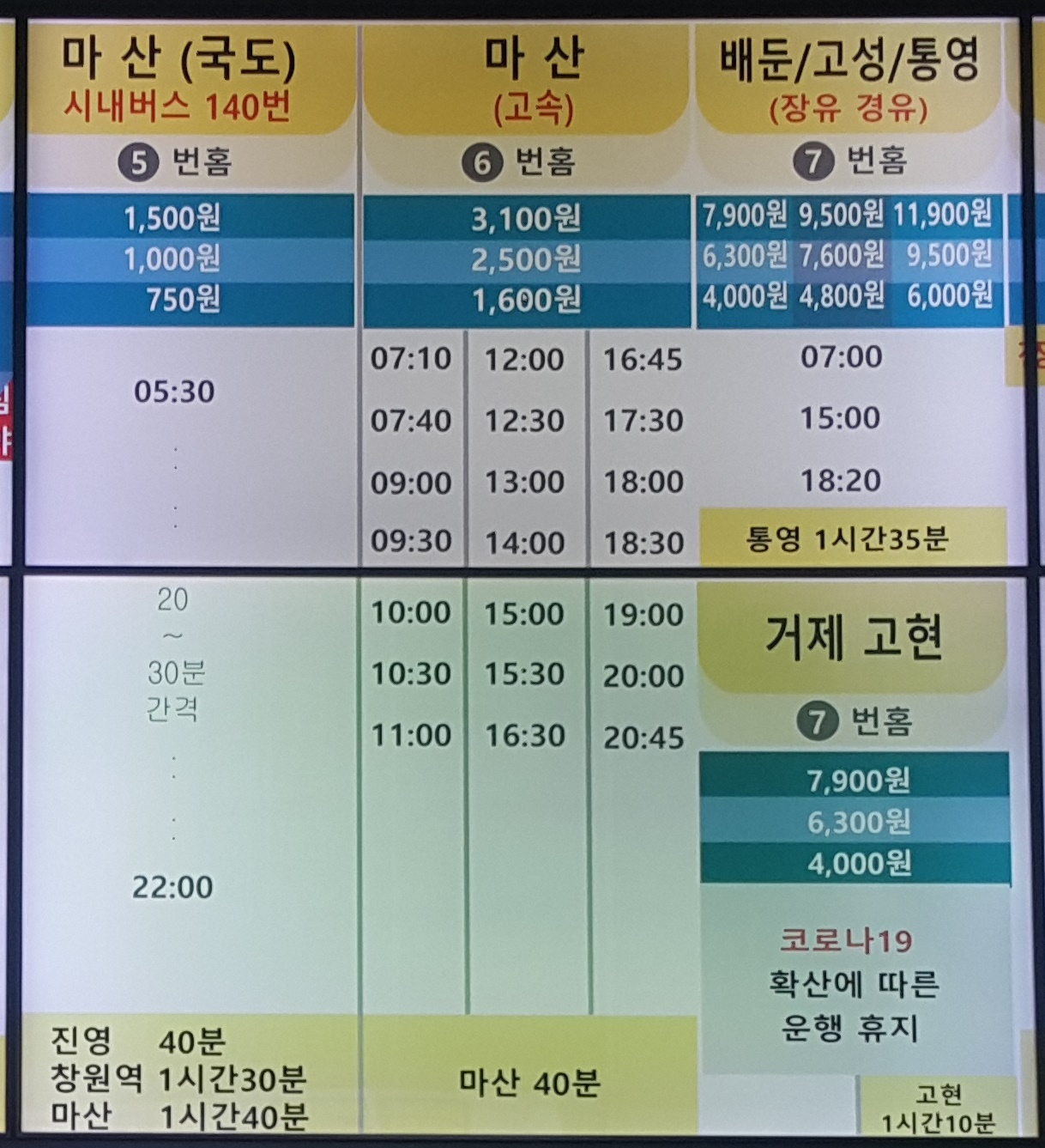 김해여객터미널 출발 마산시외버스터미널 완행 140번 시간표