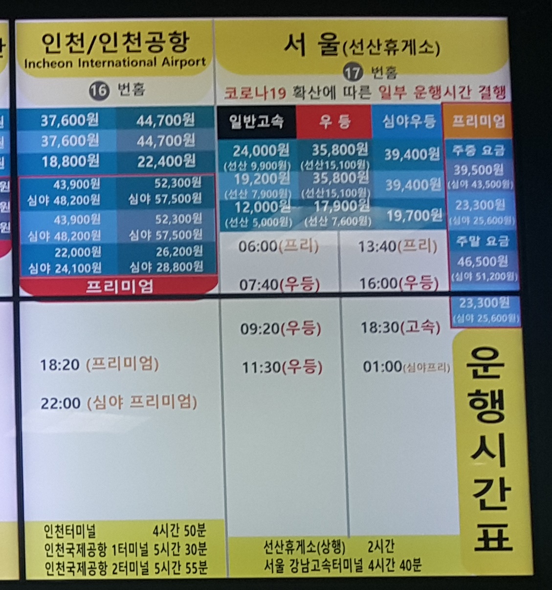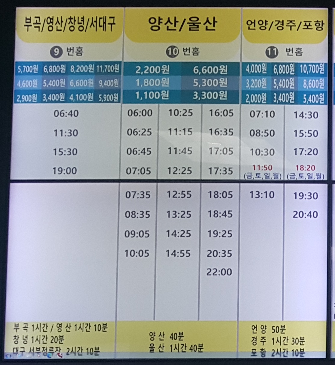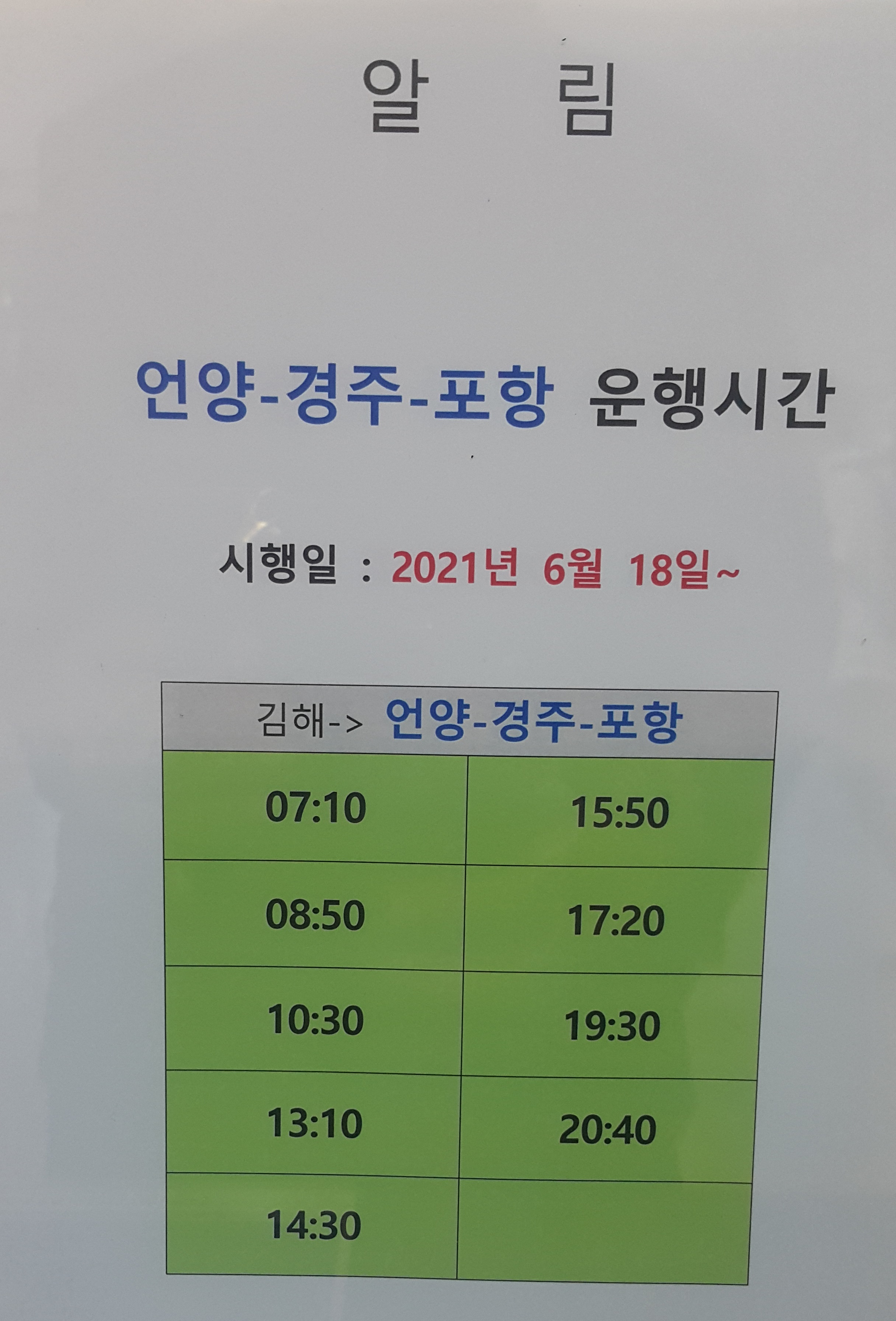 김해시외버스터미널 출발 언양, 경주, 포항 운행시간