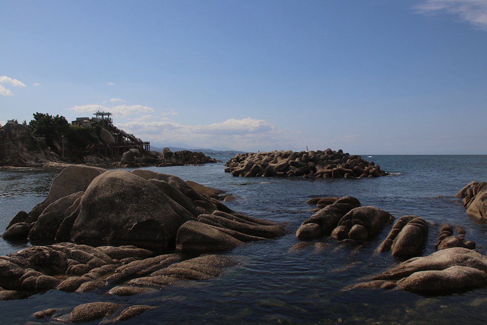 바다 바로 옆에 있으면서 부드러운 표면을 가진 대형 바위가 바치 평상을 깔아 놓은 듯하여